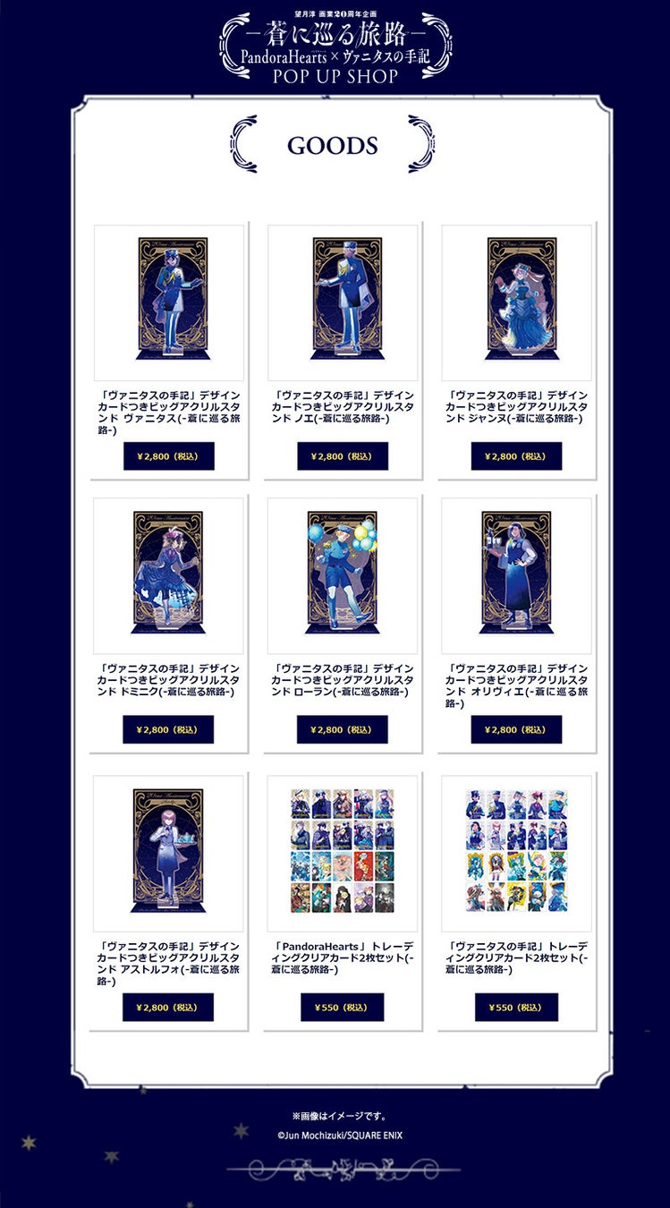 「望月淳画業20周年企画 -蒼に巡る旅路- PandoraHearts×ヴァニタスの手記」POP UP SHOPグッズ第一弾が解禁!