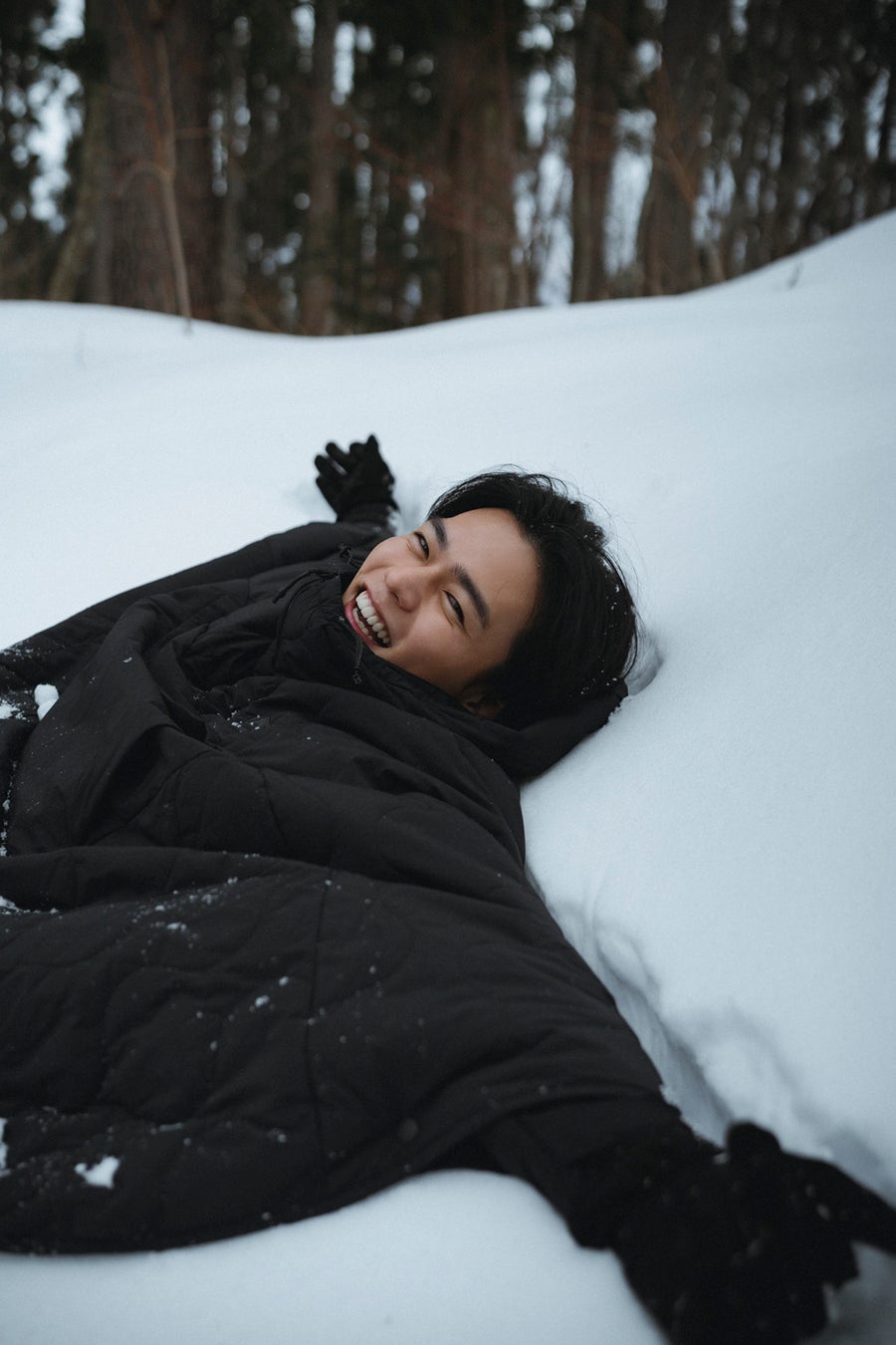 オフの日に私服で散策しながら撮影したり、夏は撮影を忘れるくらい心の底から川遊びを楽しんだり、冬は僕の地元の群馬県でよりリラックスした空気感で撮影ができて等身大の姿が沢山つまっています。