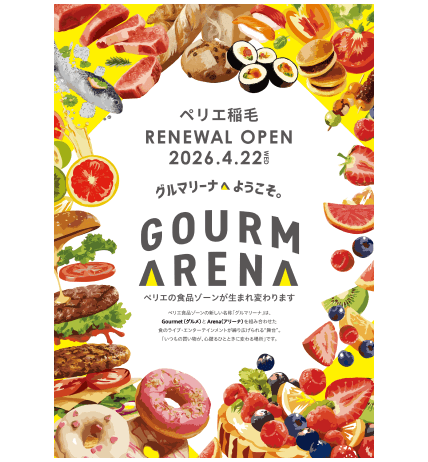 同店は、2026年春にリニューアルするペリエ稲毛の食品ゾーン「GOURMARENA(グルマリーナ)」への出店となります。グルマリーナは、“いつもの買い物が、心躍るひとときに変わる場所”をコンセプトに誕生。スイーツ・デリ・イートイン・マルシェの4つのゾーンに全38店舗が集結し、“選ぶ楽しさ”と“できたてのおいしさ”を体験できる新たなフードマーケットです。また、「GOURMARENA」という名称には、Gourmet(グルメ)とArena(アリーナ)を掛け合わせ、食のライブ・エンターテインメントが繰り広げられる“舞台”という意味が込められています。