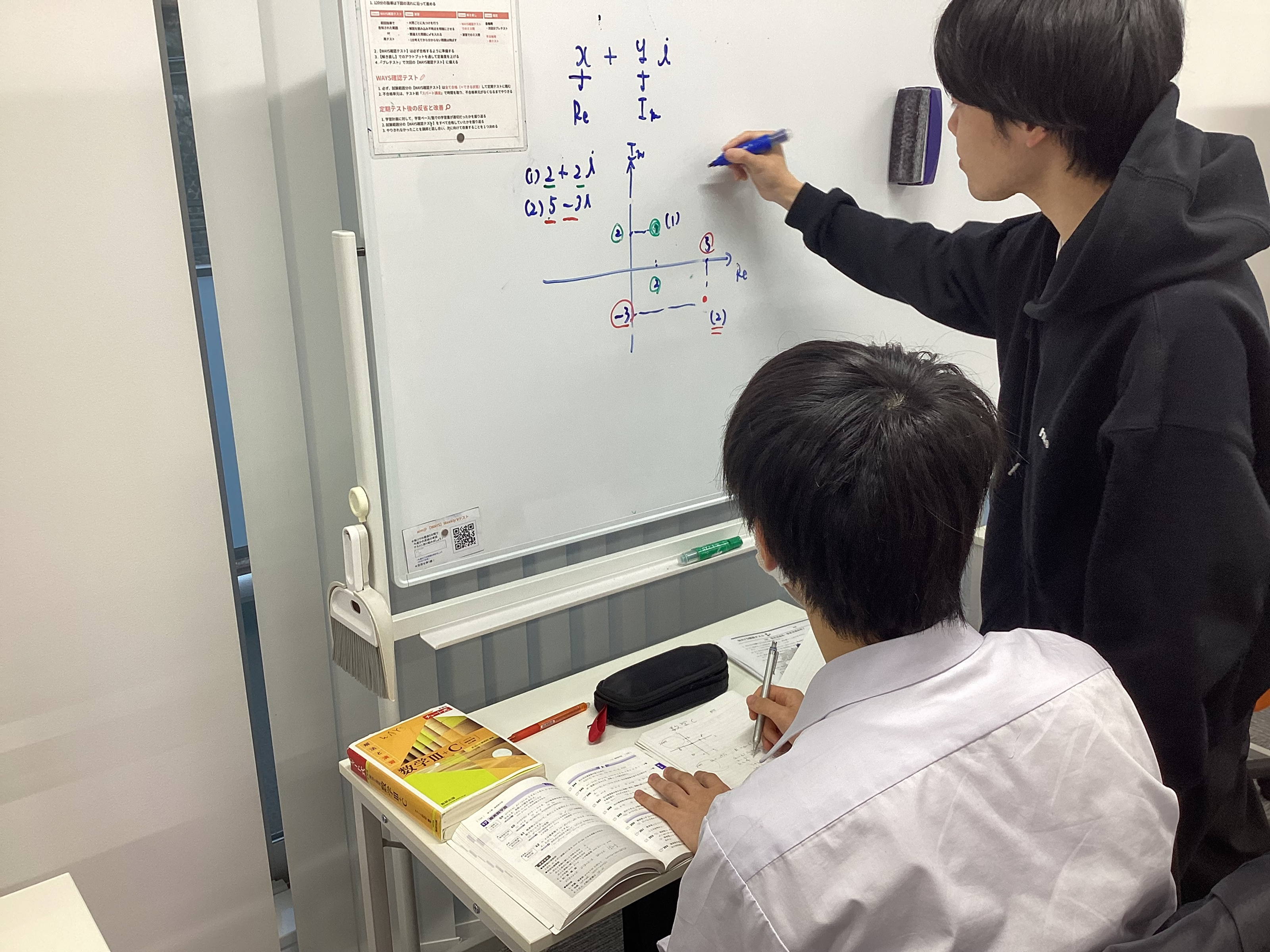 移転から約2週間が経過した現在、新教室はすでに学年末試験や新学年の準備に向けた活気に満ちています。1コマ120分の演習を中心とした個別指導のもと、専門講師と生徒が真剣に向き合う姿が多数見受けられます。自習スペースも十分に活用され、主体的に学習に向かうサイクルが新しい空間で定着し始めています。