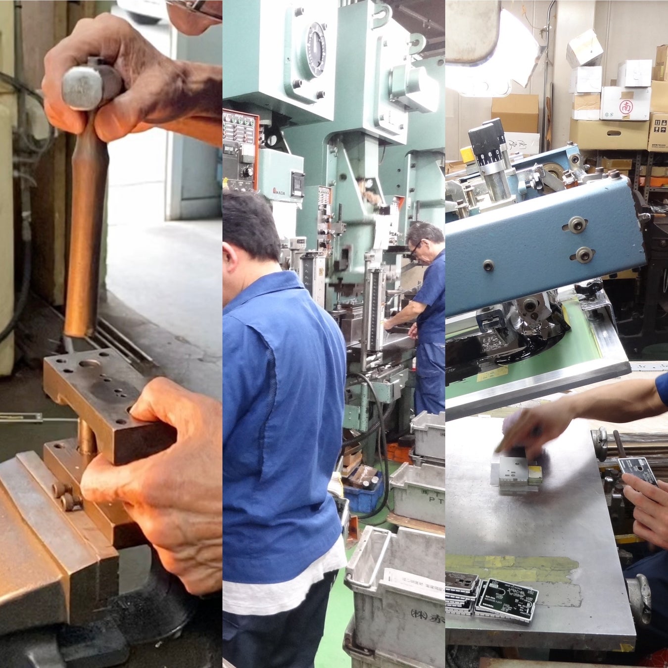 このように自社製品の開発にも力を入れていますが、ザオー工業の事業の柱は今でも金属プレス加工製品の製造、ネームプレート製作であることは変わりありません。足立区内では唯一、金型製造とプレス加工に加え、シルク印刷まで一貫生産ができることを強みにしています。