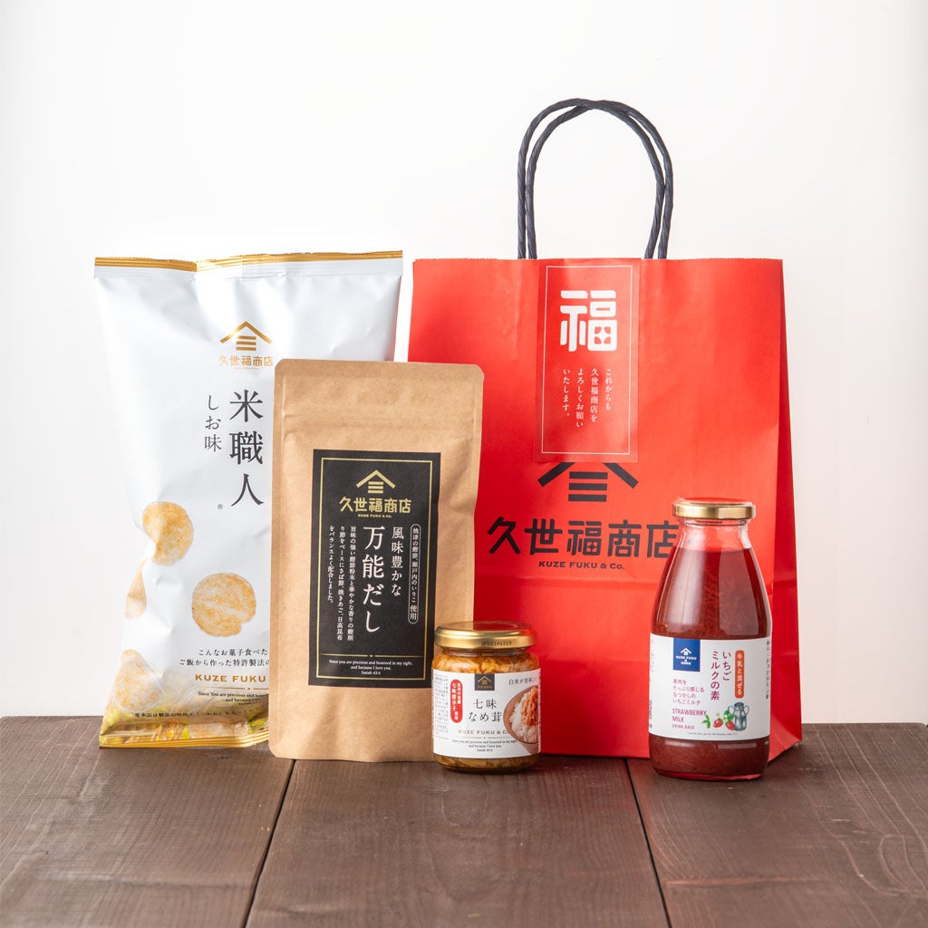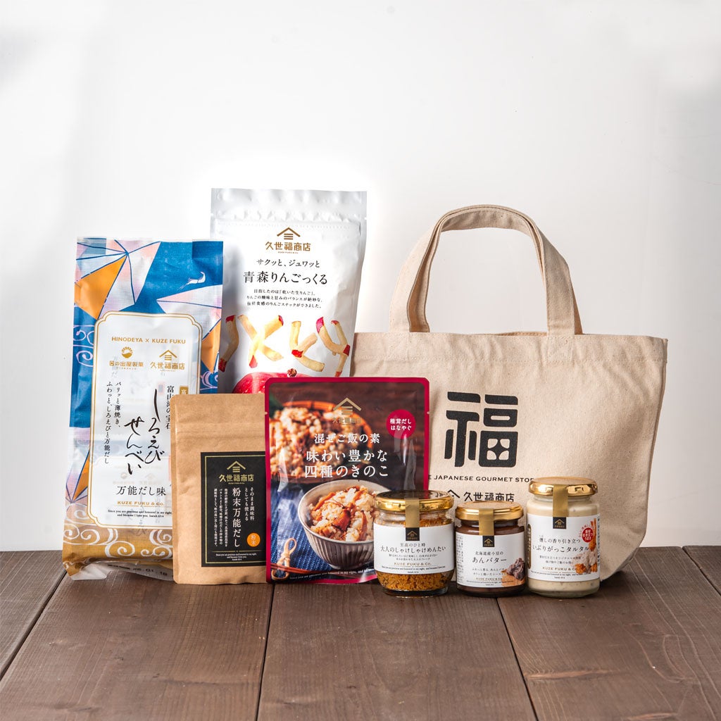 だし、ごはんのお供、お菓子など、久世福商店の人気者を集めた福袋です。