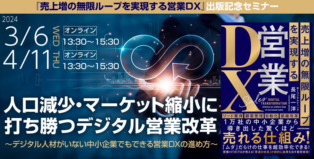 そこでこの度、弊社代表・長尾一洋が、日本の99.7%を占める中小企業のデジタル営業改革の手引書として、『売上増の無限ループを実現する営業DX』(KADOKAWA)を上梓します。