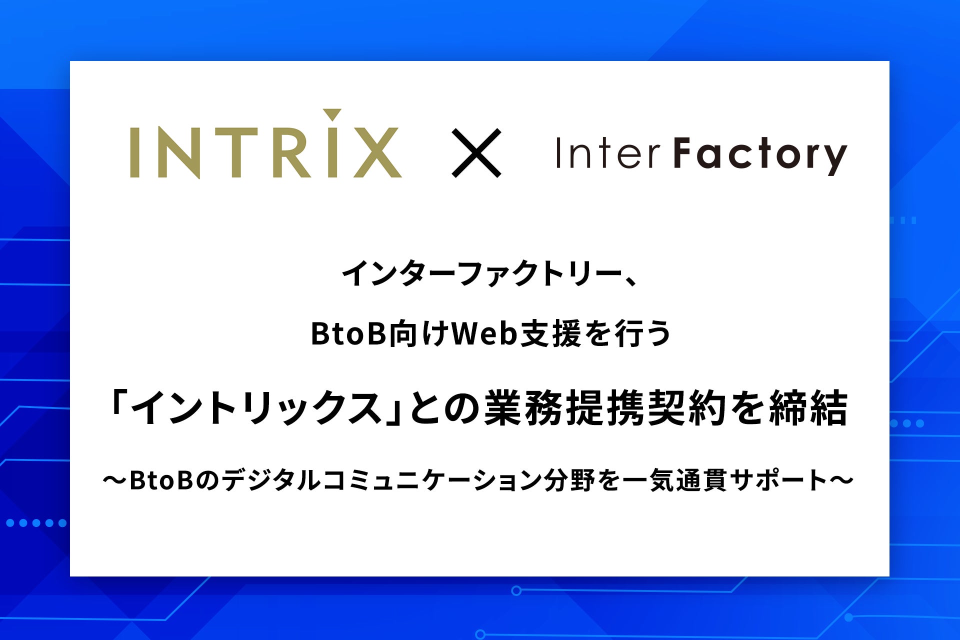 インターファクトリー、BtoB向けWeb支援を行う「イントリックス」との業務提携契約を締結
