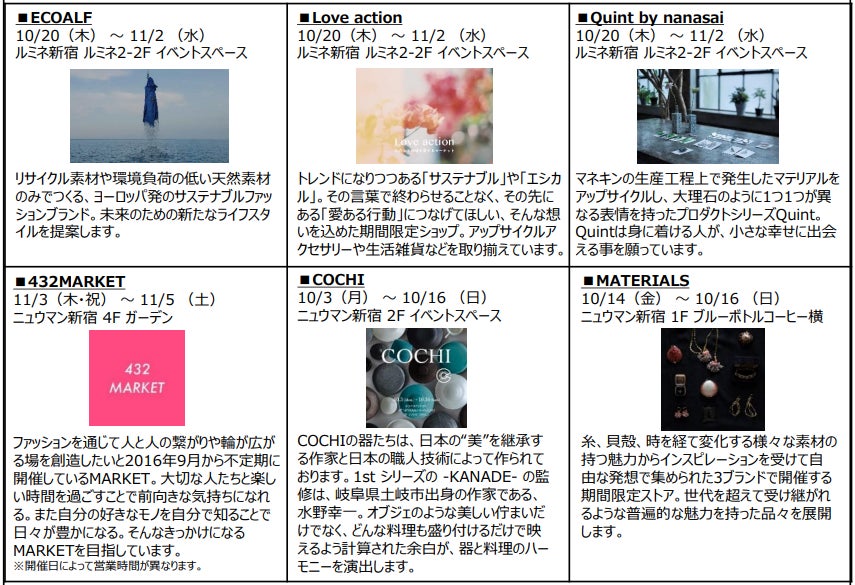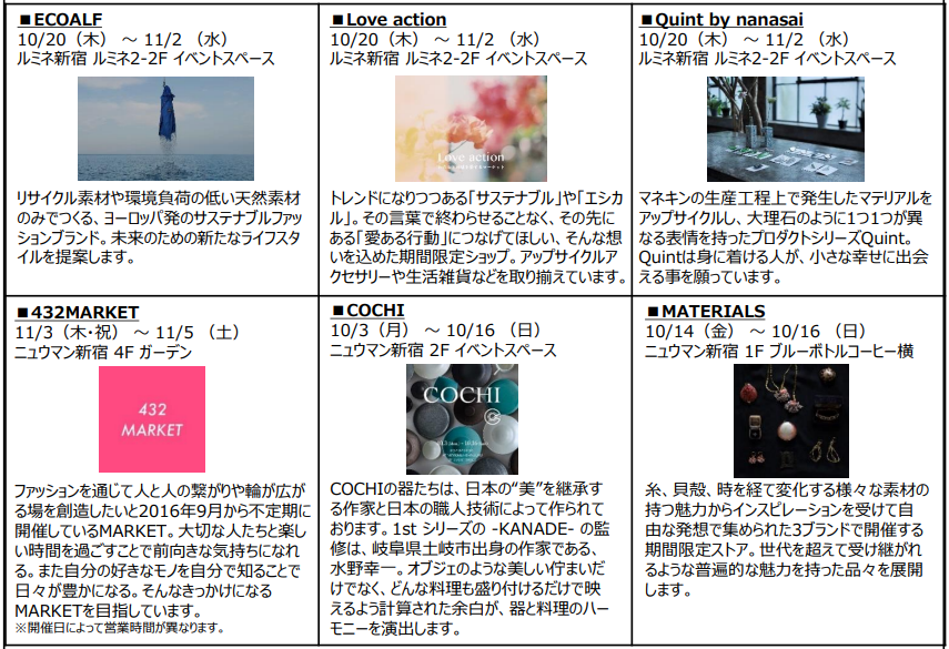 ルミネ新宿:ECOALF、Love action、Quint by nanasai、Öffen、ANNUAL