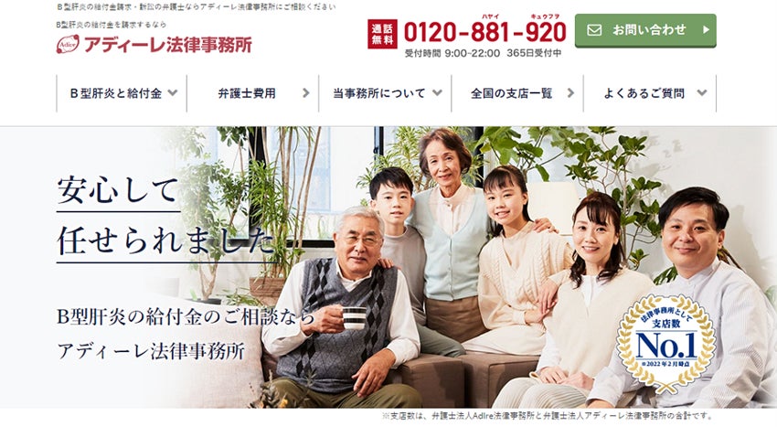 アディーレ法律事務所(東京都豊島区、代表弁護士・鈴木淳巳、以下「アディーレ」*)は、B型肝炎の給付金請求に関するサービスサイト(https://www.adire-bkan.jp/)を3月22日(火)に全面リニューアルいたしましたので、お知らせいたします。