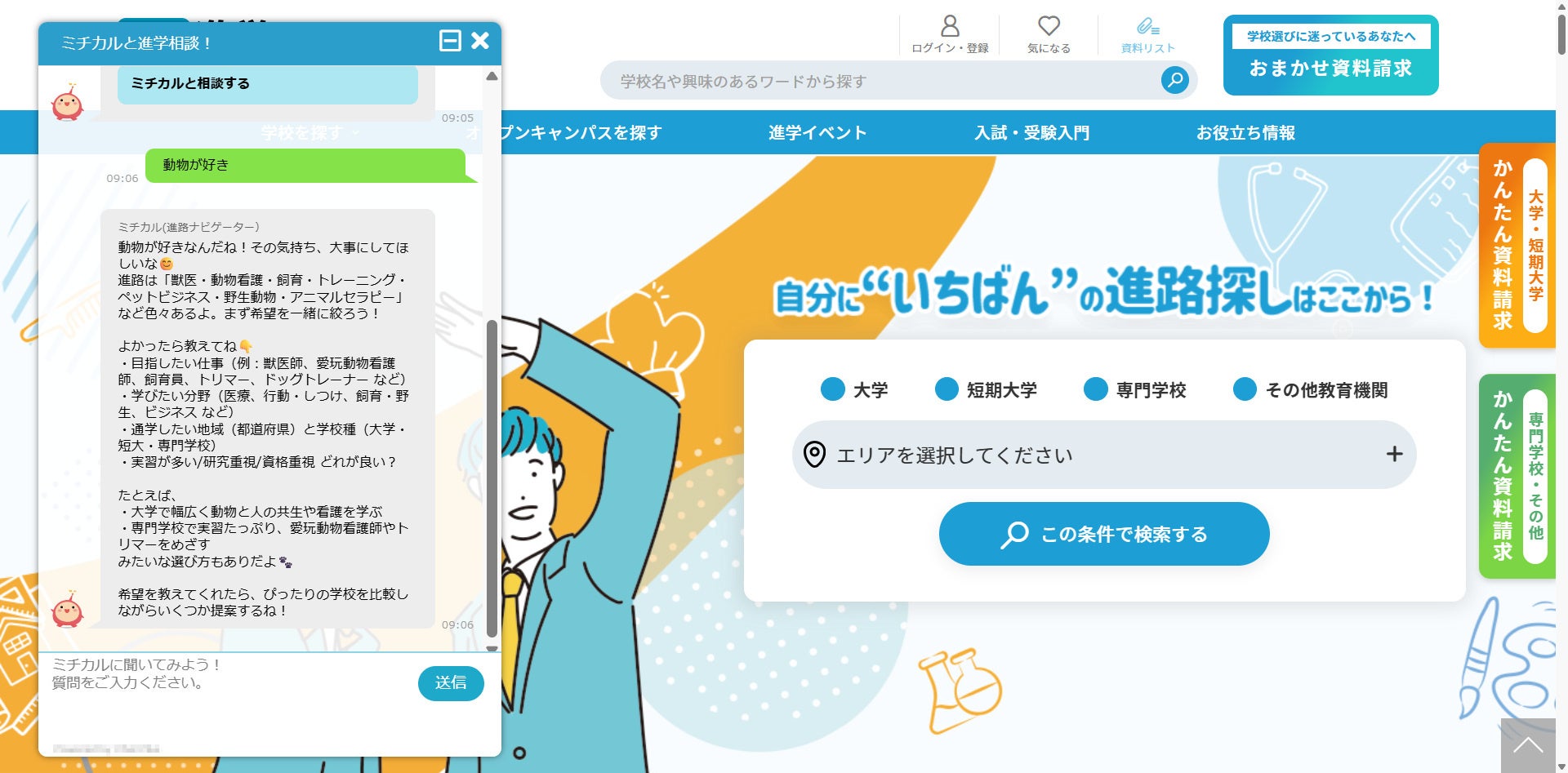 【1,200万文字の独自データ】志望校マッチングAI「ミチカル」を公開 「何がやりたいか分からない」をAI対話が志望校に変える