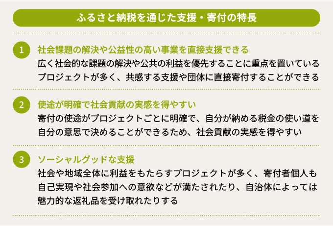 ふるさと納税を通じた支援はその期待に応え、寄付者個人だけではなく、社会や地域全体に利益をもたらすソーシャルグッドな支援と言えます。