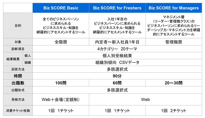 *1 Biz SCORE Basic、Biz SCORE for Freshersは、1受検につき1枚となります。詳細は当社までお問い合わせください。