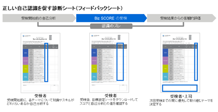 Biz SCOREシリーズは、組織の中で期待される成果を継続的に出すために必要な知識・スキルを診断するテストです。自分の能力で不足している点を正しく認識することによって、健全な危機感が芽生え、それが学ぶ意欲につながります。
