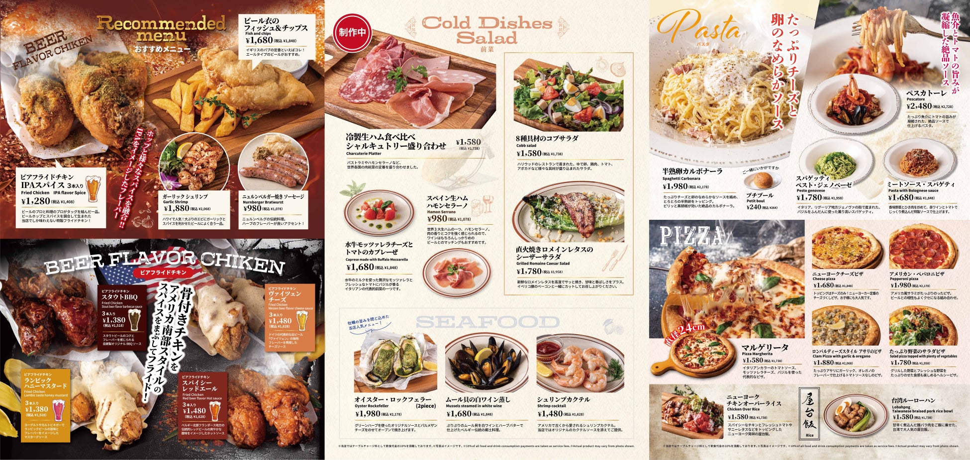リニューアルに伴い新設された専用ブロイラー(グリル)を使用し、香ばしくジューシーな味わいを実現しました。ビールとの相性抜群のアラカルトメニューをお楽しみください。