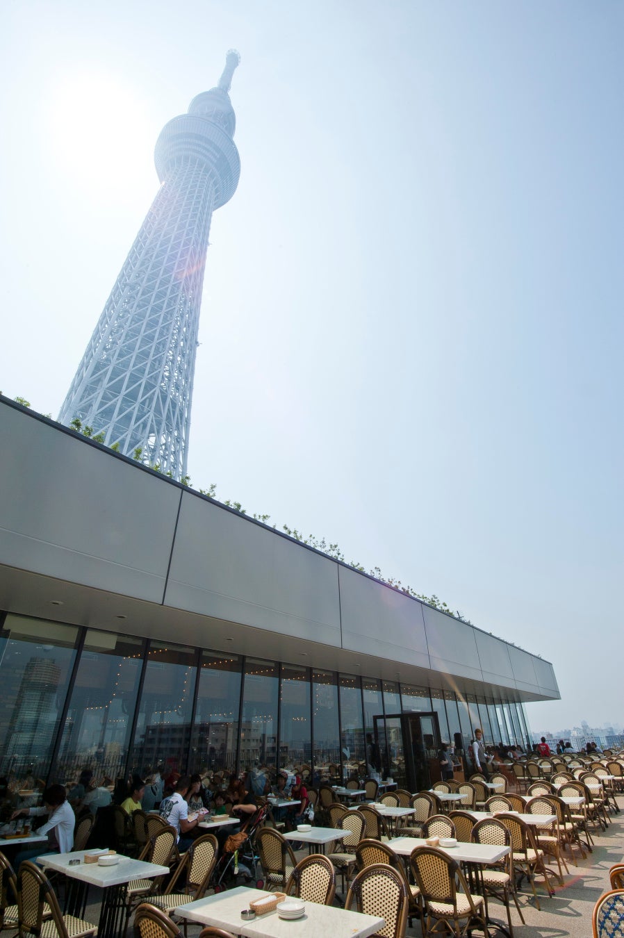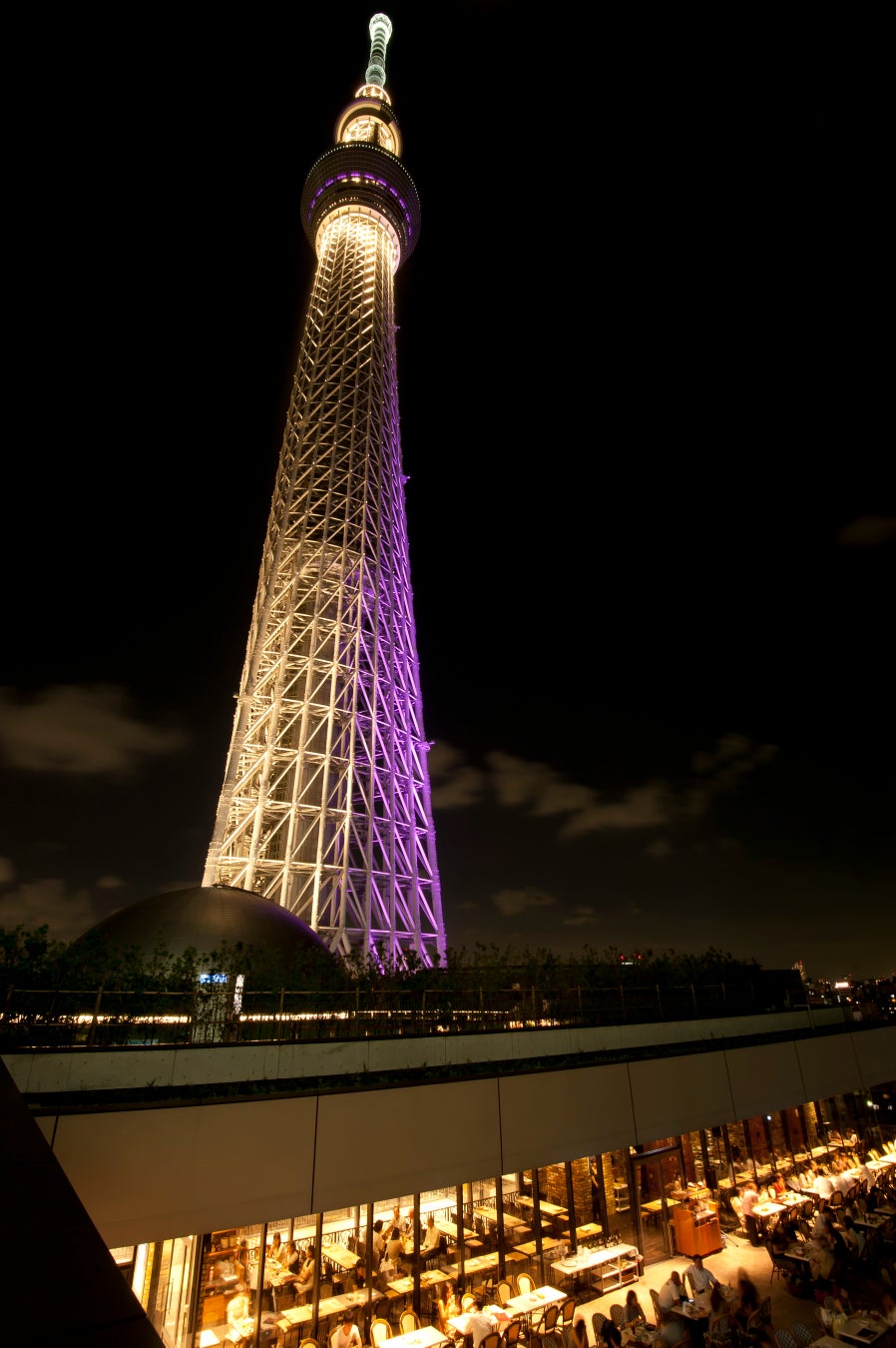 昼夜を問わず、東京スカイツリーを望む開放的なテラス席を完備。夜景とともにビールを楽しめる贅沢な時間を提供します。