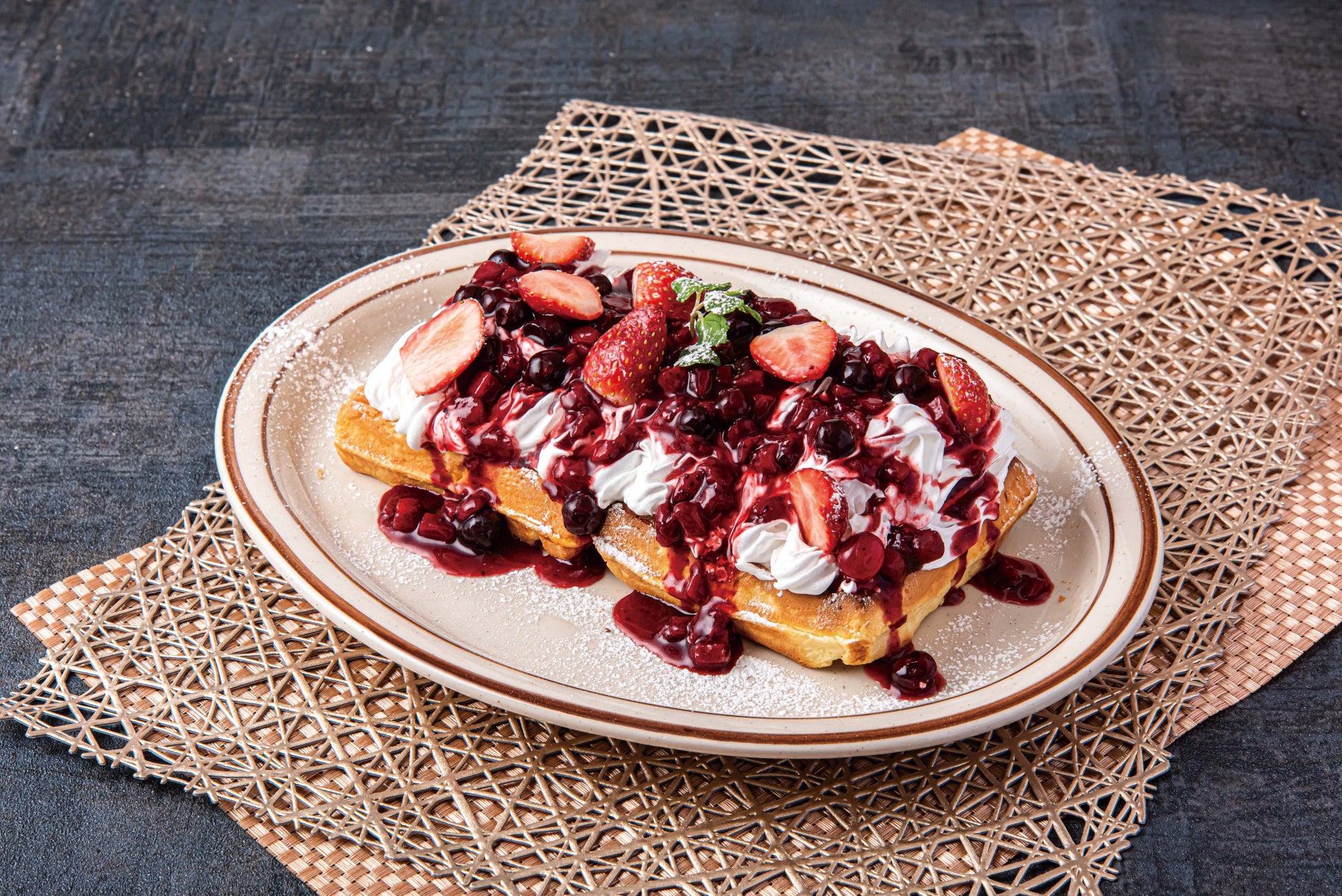 外はカリッと、中はふんわりと軽い食感が特徴の本場ベルギースタイルのワッフル。特製ベリーソースととも にお楽しみください。
