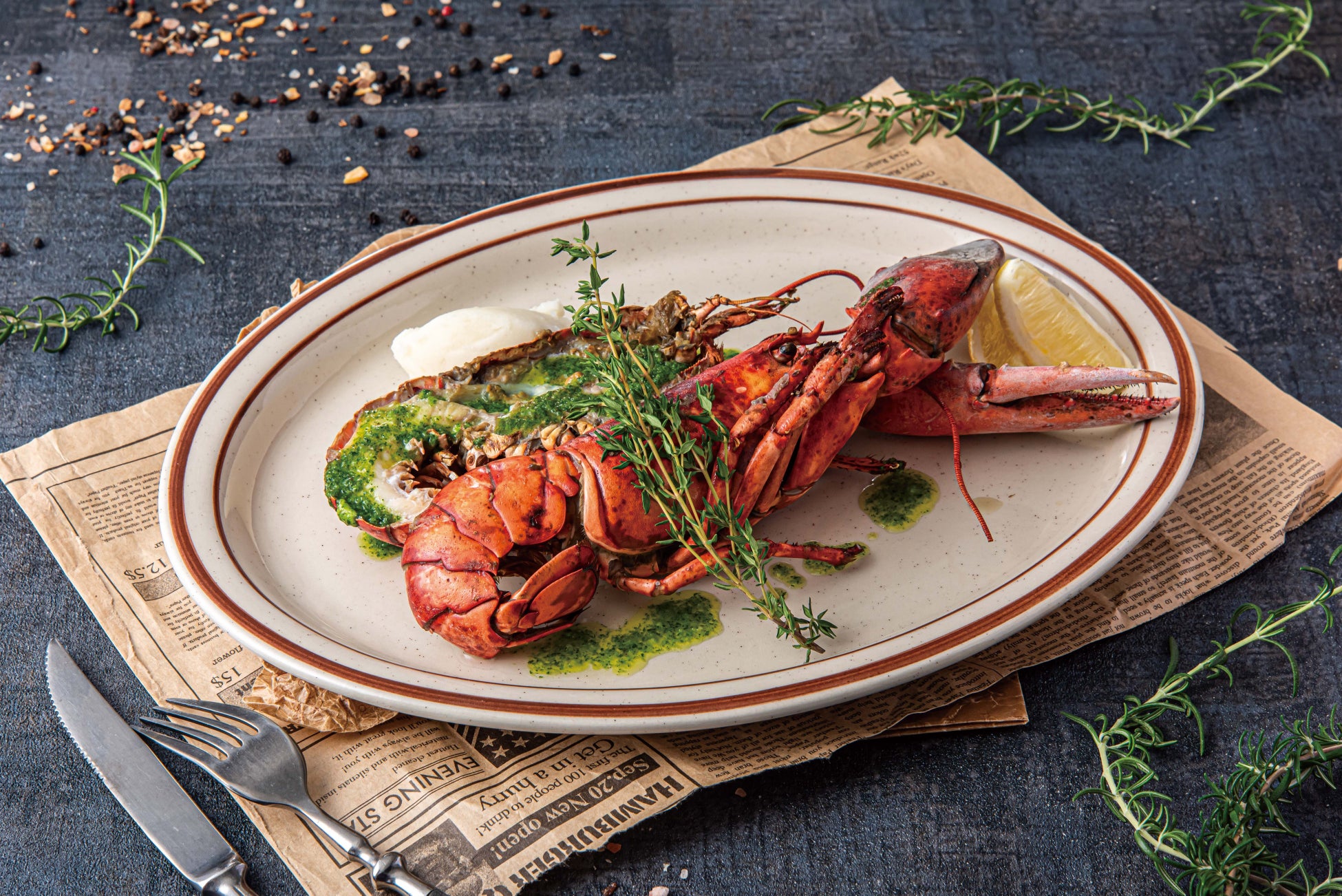 オマール海老とも呼ばれるエビの中でも最大級の高級食材。豪快に半身に割り、高温でいっきに焼き上げます