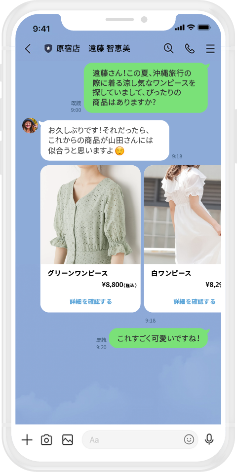 またLINEコール機能を使って動画で商品を紹介したあとに、チャット機能を使ってその商品のリンクをすぐに送ることができるなど、コール機能とチャット機能を組み合わせることで、よりリッチな1to1オンライン接客が実現します。