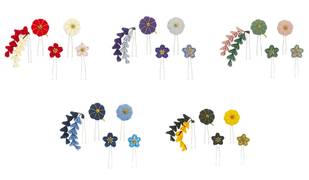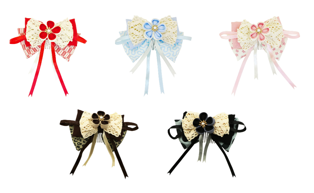 華やかな3種のリボンと梅の花を組み合わせ、大正浪漫を彷彿とさせる存在感あふれる簪を展開。5色のカラーバリエーションからお好みの色を選べるので、浴衣はもちろんのこと、成人式や卒業式まで、どんなシーンでもお楽しみいただけます。コームタイプなので、様々なヘアスタイルにも簡単に取り入れられるうえ、存在感のあるデザインが、ヘアスタイルにアクセントを加え、特別なシーンをより一層華やかに彩ります。