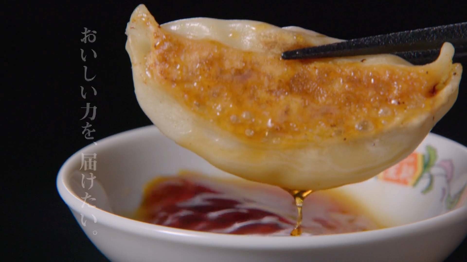 当社の看板メニューである餃子をおいしそうに食べる仲野太賀さんの表情とシズルカットのみで構成したシンプル且つメッセージ性の強いCMです。餃子を口にした仲野太賀さんの表情に観ている私たちも思わずにっこりしてしまう作品です。餃子の王将ラーメン篇もございます。