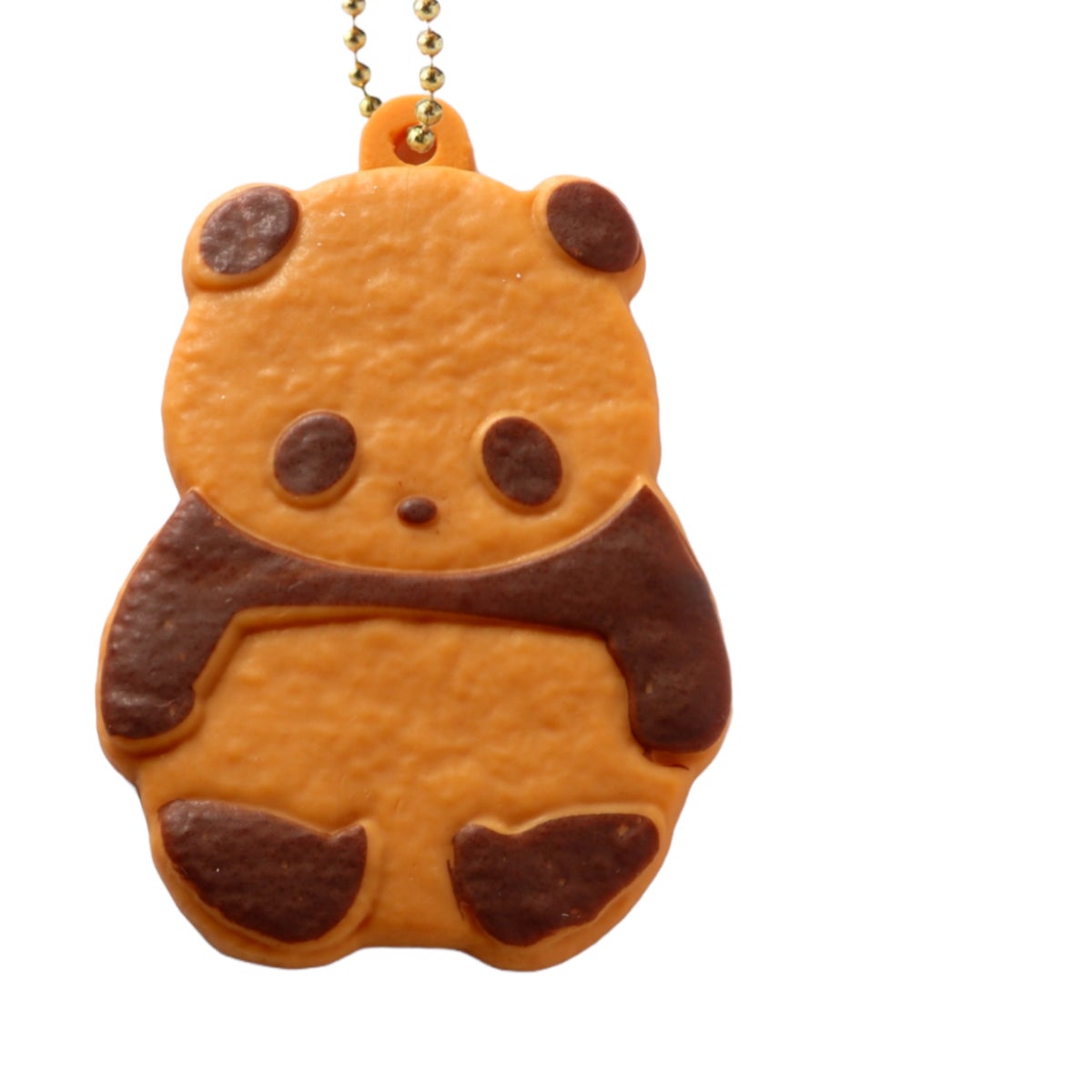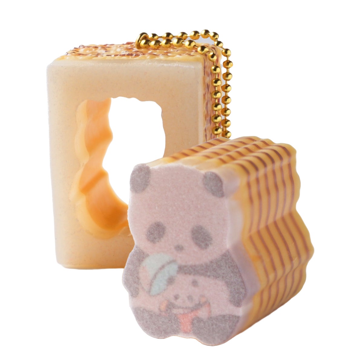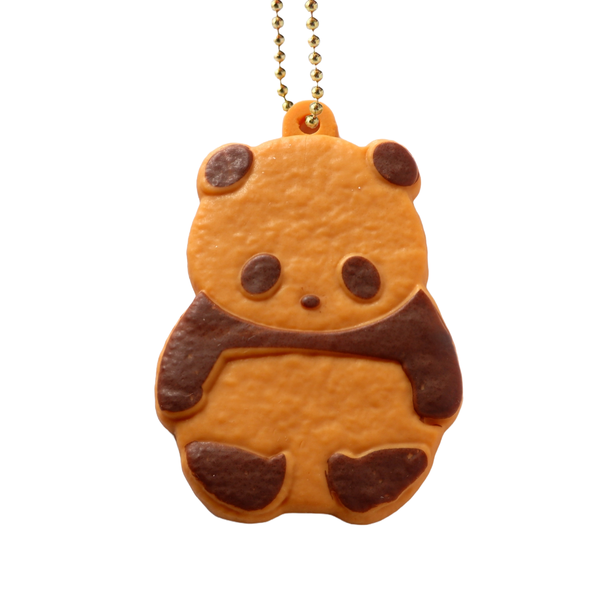 実際のパンダバウムと同じように型ぬきができちゃう、遊び心のつまったミニチュアキーホルダーができました。白生地の部分はふんわりすべすべな手触り、各バウム生地の色味の違い、質感も丁寧に表現されています。