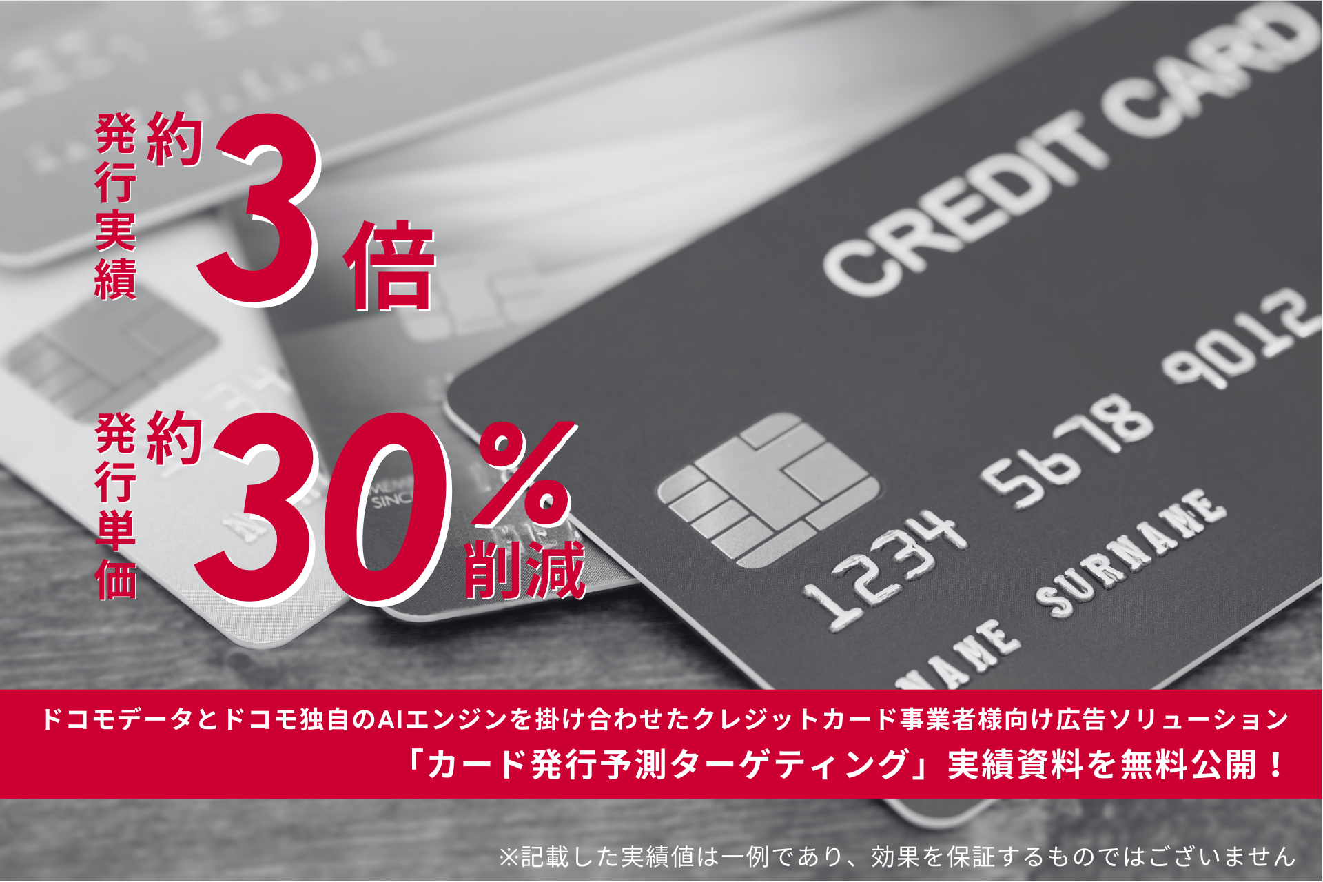 ドコモデータとドコモ独自のAIエンジンを掛け合わせたクレジットカード事業者様向け広告ソリューション「カード発行予測ターゲティング」実績資料を公開!~発行実績約3倍、発行単価約30%削減など~
