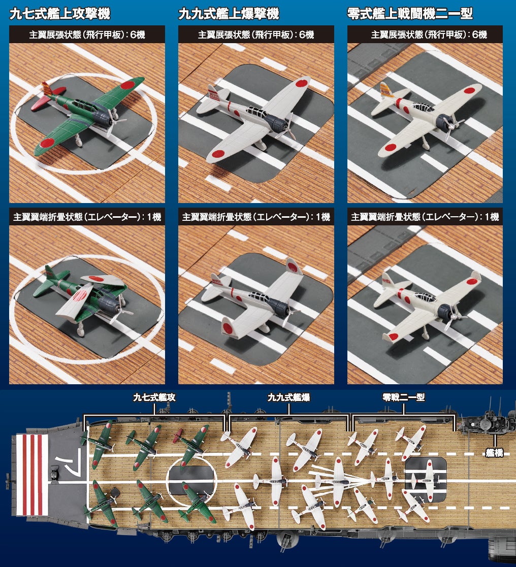 ●九七式艦上攻撃機、九九式艦上爆撃機、零式艦上戦闘機二一型が各7基ずつ付属