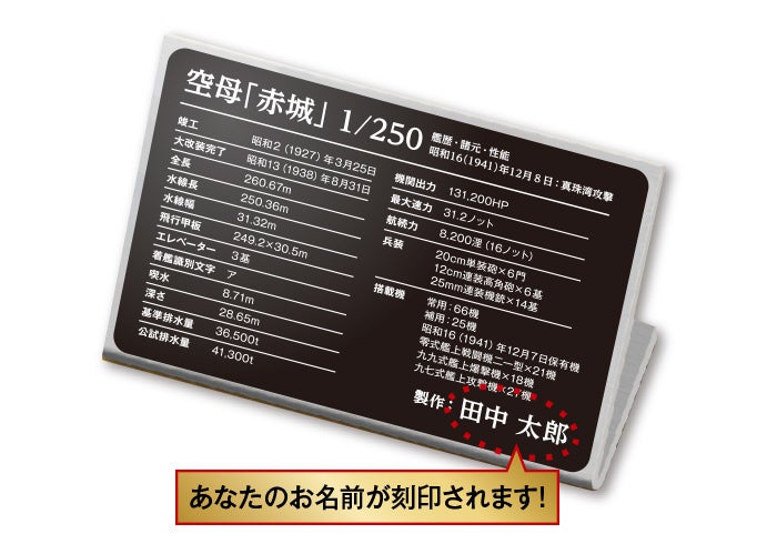 空母「赤城」の艦歴・諸元・性能とあなたのお名前をエッチング加工で記入した銘板です。