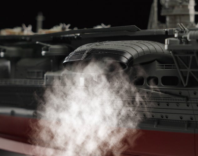 空母「赤城」を象徴づける右舷の煙突からは霧状のシャワーが噴射。もっとも注目すべきギミックの1つです。
