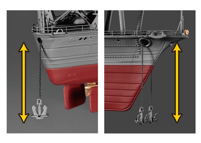 艦体の前部・後部にあるアンカーは電動で巻き取りが可能。アンカーの投錨・抜錨によって当時の出航・帰航の様子を再現できます。