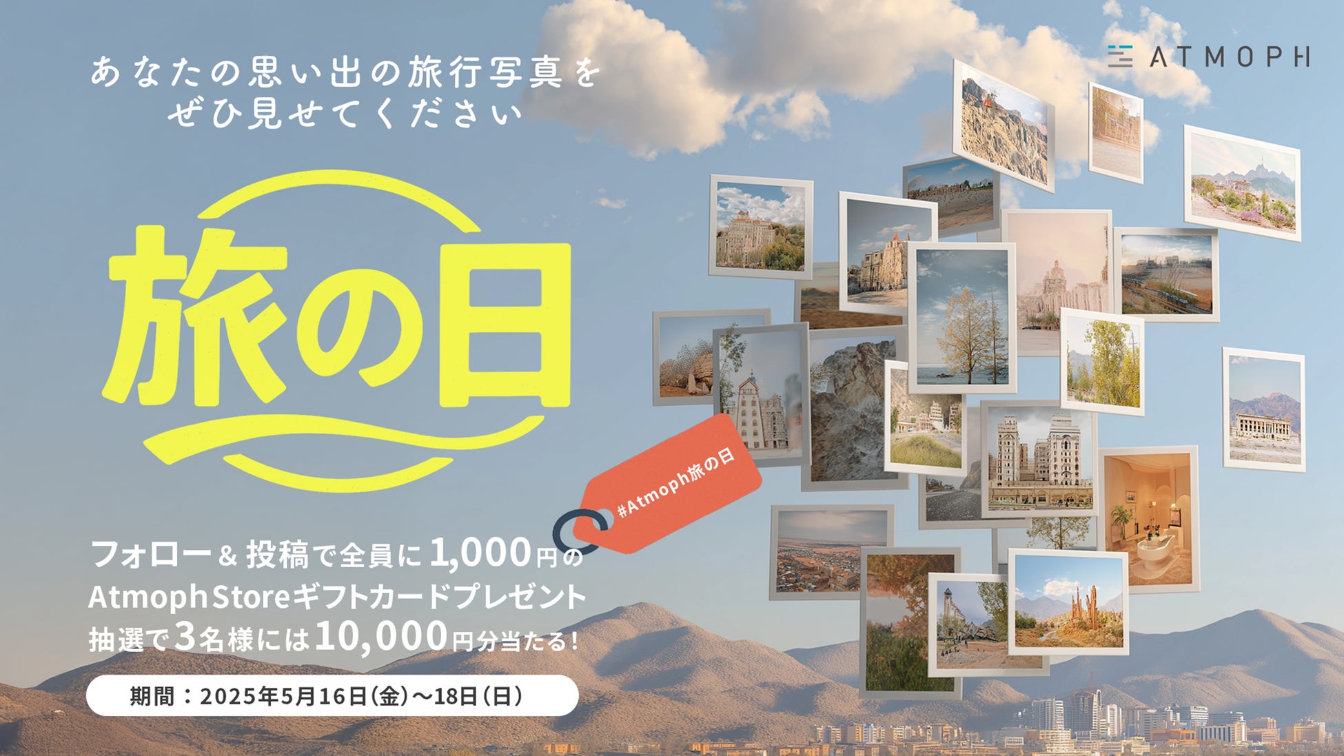 バーチャル窓「Atmoph Window」を製造・販売するアトモフ株式会社(本社:京都市、代表取締役:姜 京日)は、5月16日「旅の日」にあわせて、旅の風景を共有し合うSNSキャンペーンを実施します。X(旧Twitter)またはInstagramで「窓から見たい旅の風景写真」を投稿すると、もれなく1,000円分のAtmoph Storeギフトカードを進呈。さらに抽選で3名様に10,000円分のギフトカードが当たります。