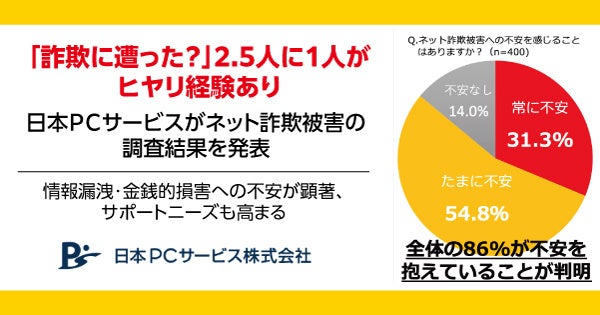 「詐欺に遭った?」2.5人に1人がヒヤリ経験あり日本PCサービスがネット詐欺被害の調査結果を発表