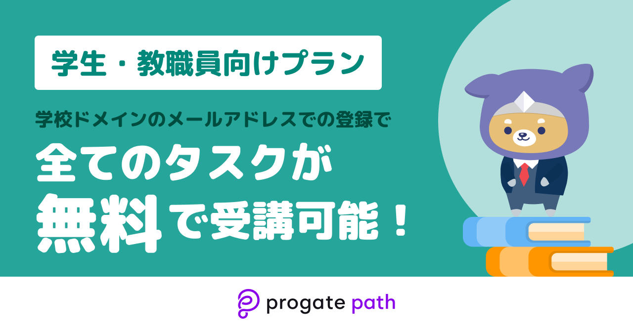 ▶学生・教職員向けプラン:https://app.path.progate.com/plan/education/?cid=Jo3P3nC8&sid=prt