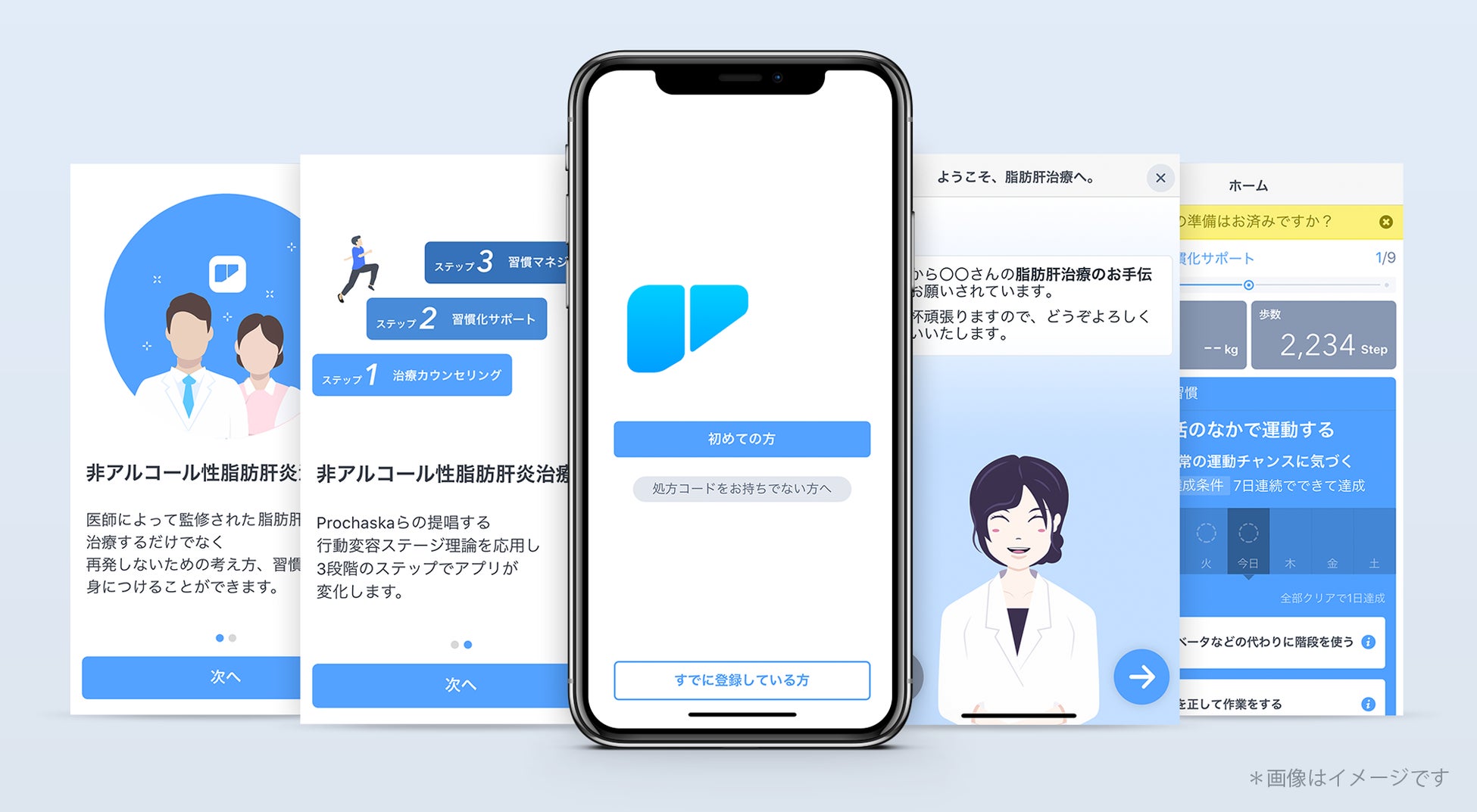 本アプリは、当社と東京大学医学部附属病院と共同で2016年10月より単施設における臨床研究を開始、2018年4月からは多施設共同臨床研究が実施され、認知行動療法に基づいた本アプリによる明確な体重減少ならびに肝線維化の改善効果が認められています。今後、これまでの試験のデータを基に、第3相臨床試験へと進めてまいります。