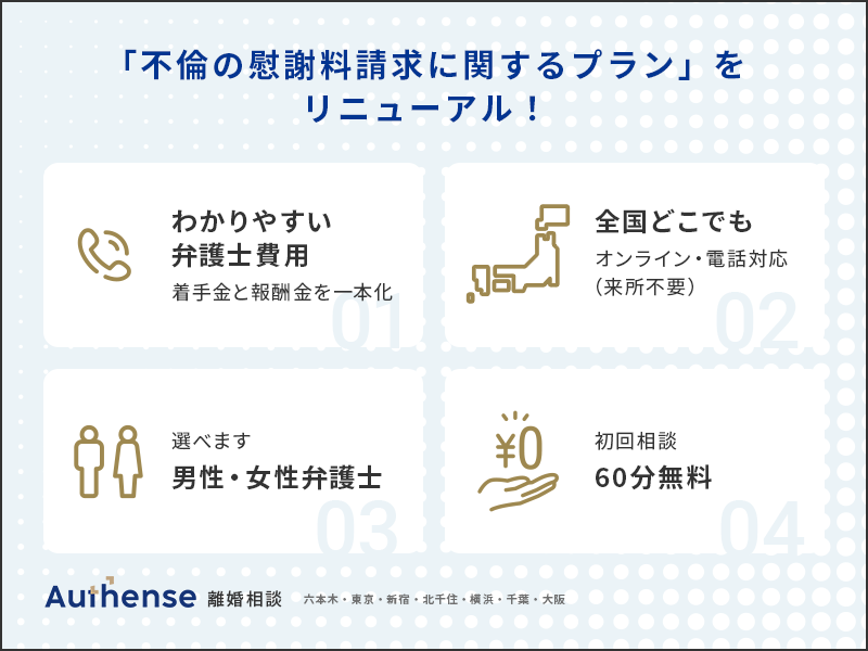 Authense法律事務所の「不倫の慰謝料請求に関するプラン」の特徴