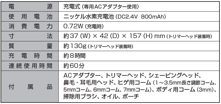 ・2種のコーム付き。(ヘア用コーム、ヒゲ用コーム)