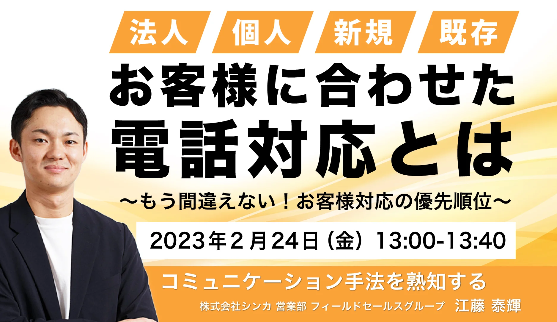【無料オンラインセミナー】もう間違えない!お客様対応の優先順位 法人/個人/新規/既存「顧客別の最適なコミュニケーション手法を解説します」開催
