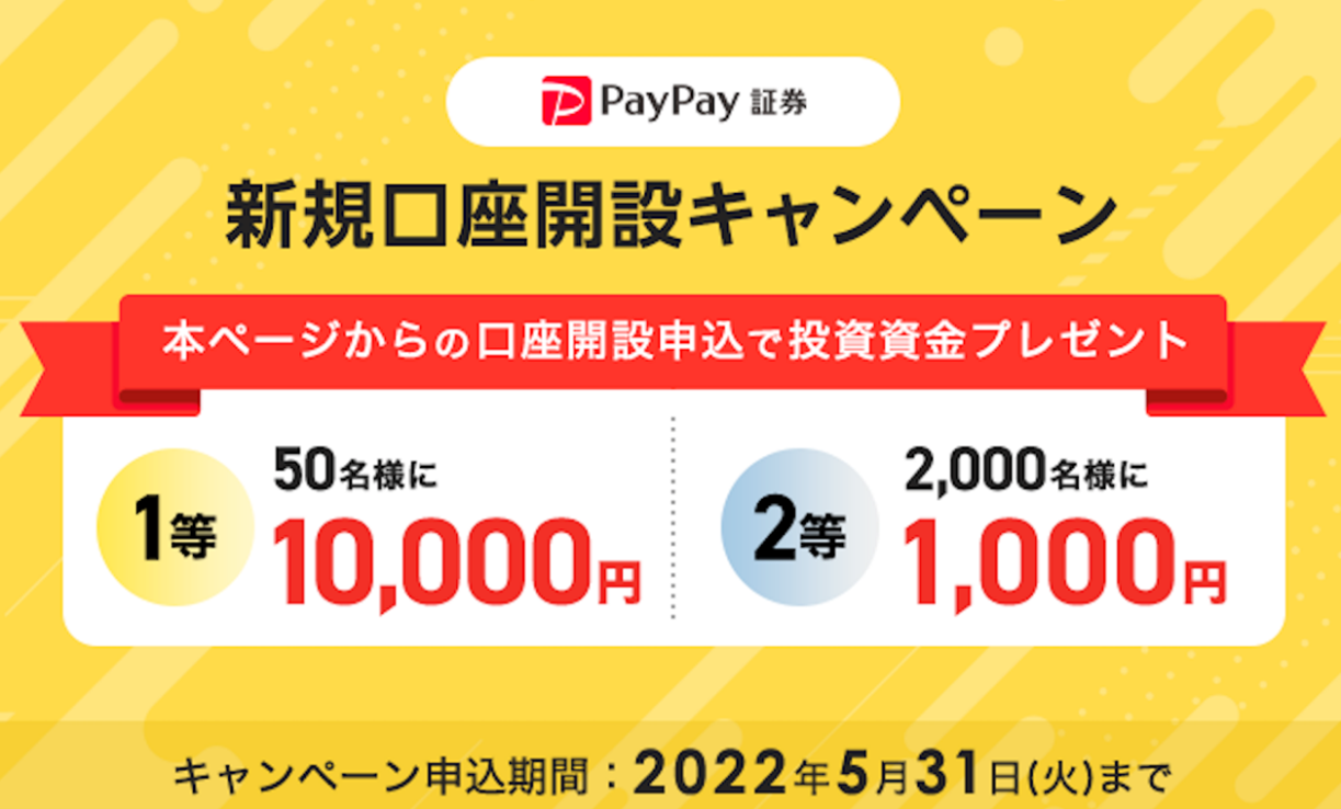 - キャンペーン(1):「PayPay証券 新規口座開設キャンペーン」(4/15~)