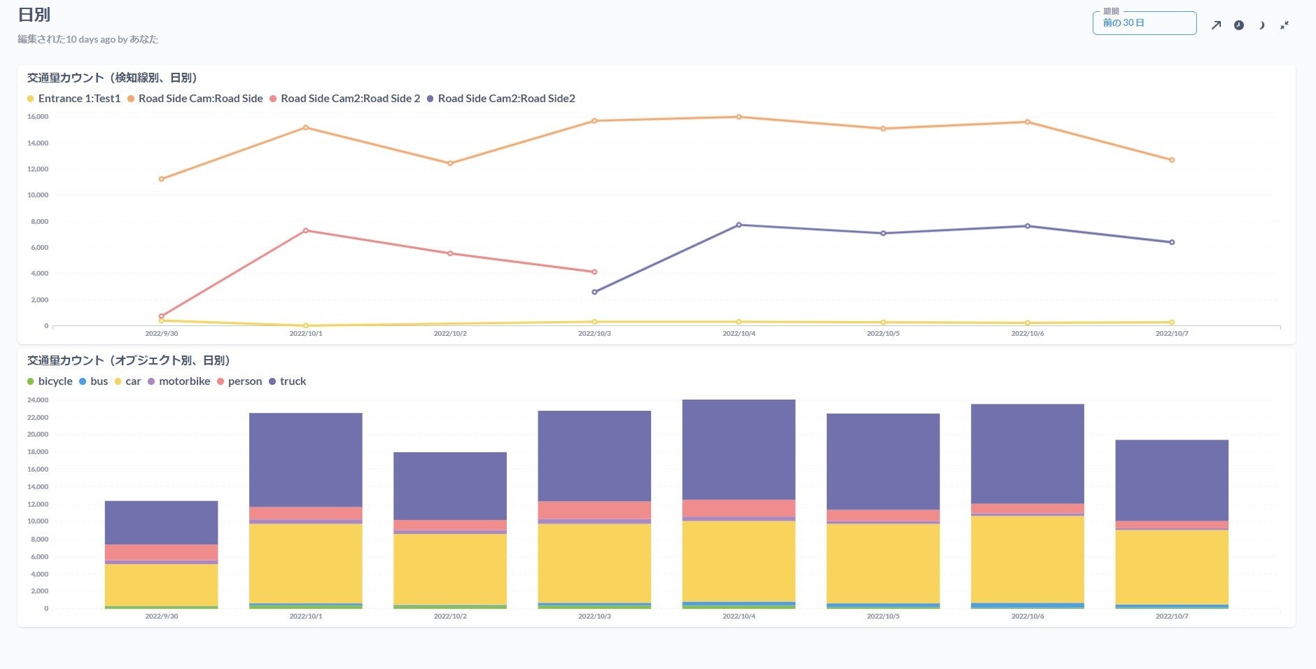 ユーザビリティにも配慮しており、車両や歩行者の計測地点をWEB画面上から簡単に変更できる管理画面を用意している他、観測データを簡単にグラフ化できる機能も実装しています。また、Microsoft EdgeやChromeといった最新のブラウザに標準で対応しています。
