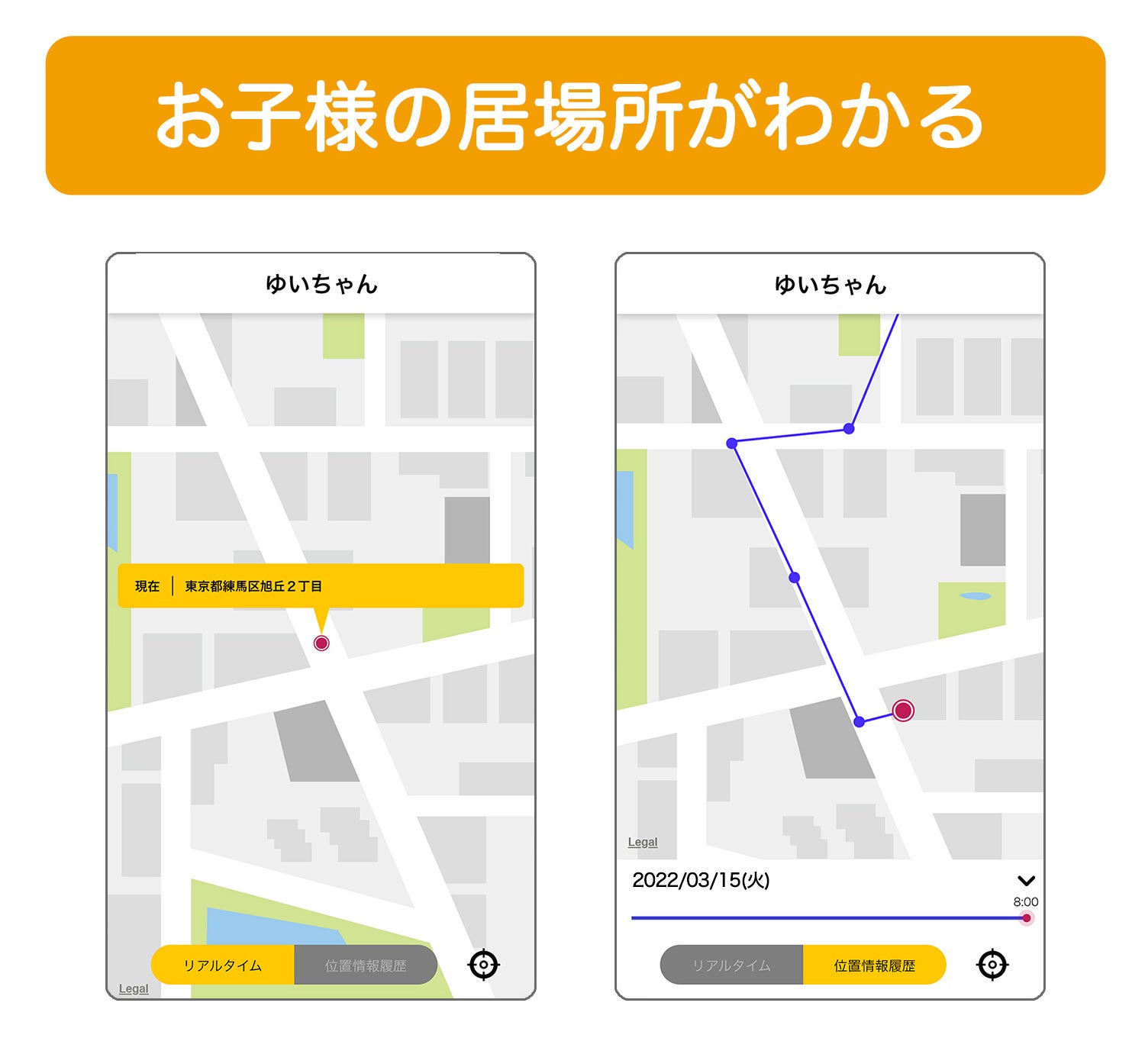 ■お子様の位置情報を専用のスマートフォンアプリで確認できる