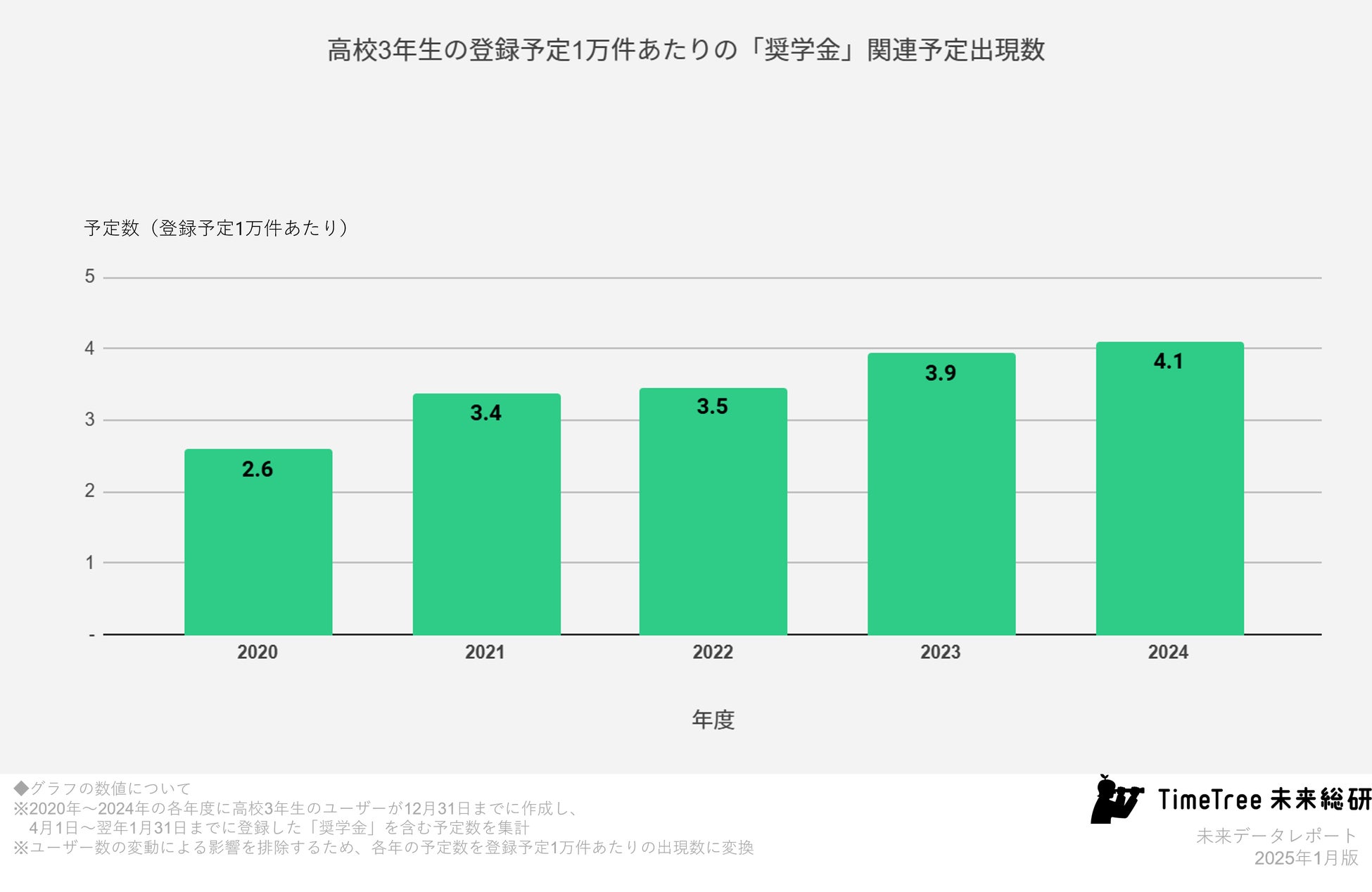 【未来データレポート 2025年1月版】 大学受験本番!大学全入時代でも高校1年からの受験対策が当たり前に?高校3年生は「奨学金」関連の予定が増加傾向に
