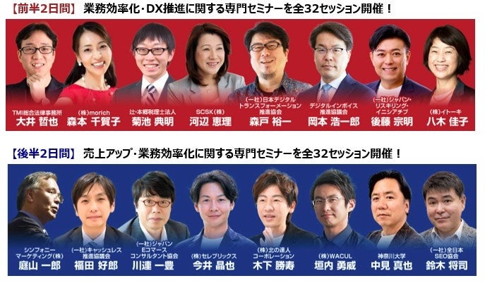 その他にも、本分野の第一線で活躍する方々を講師にお招きし、全64セッションを開催。あらゆる業種・企業・法⼈のビジネスパーソン必⾒のセミナープログラムとなっている。