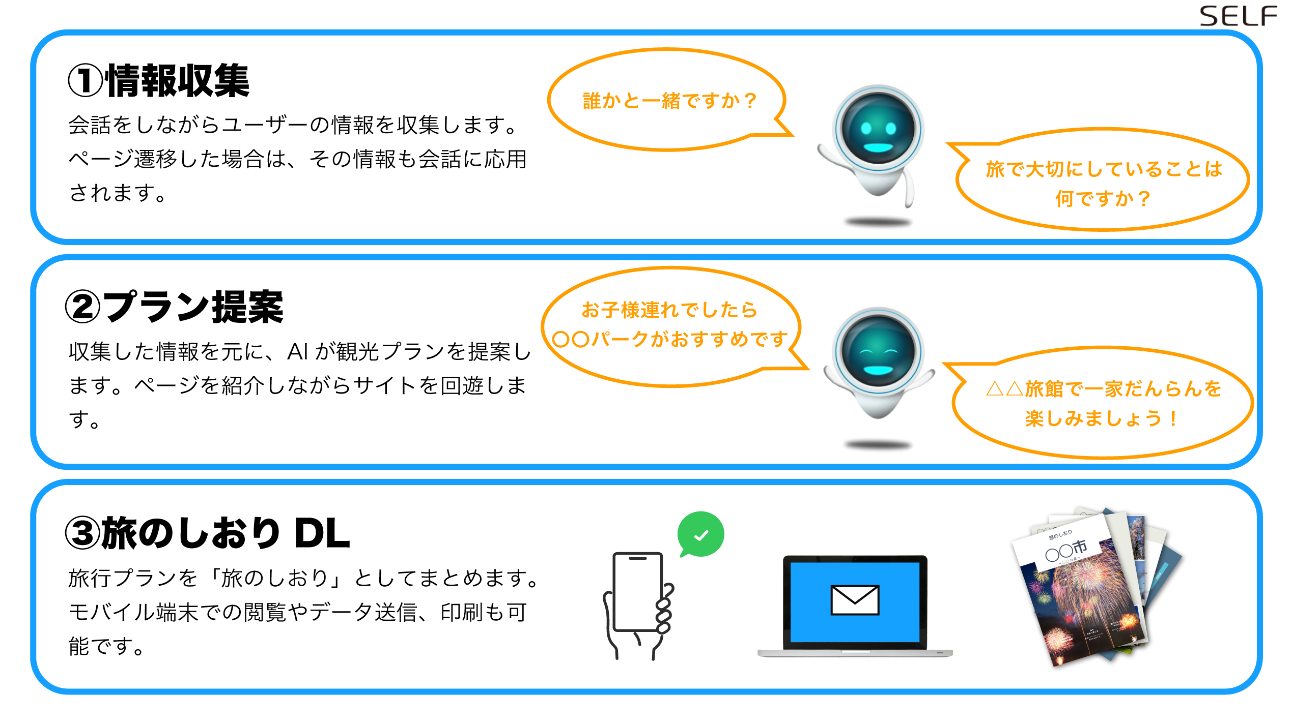 SELF社は、独自に開発した会話型「コミュニケーションAI」を活用して、観光客に最適な旅行プランを提案・作成・保存するDXソリューション「AI旅のしおり」をリリースしました。