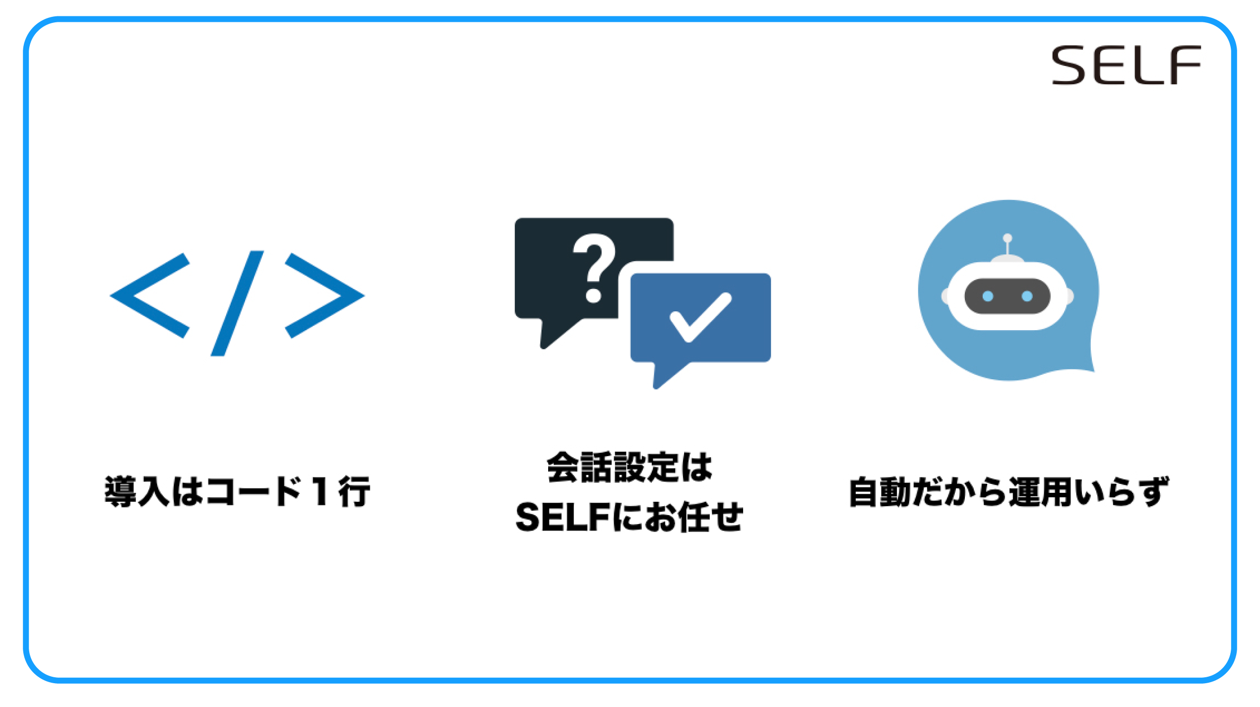 会話ライブラリの生成もSELF社で行うため、導入企業側での負担が非常に少ないサービスです。