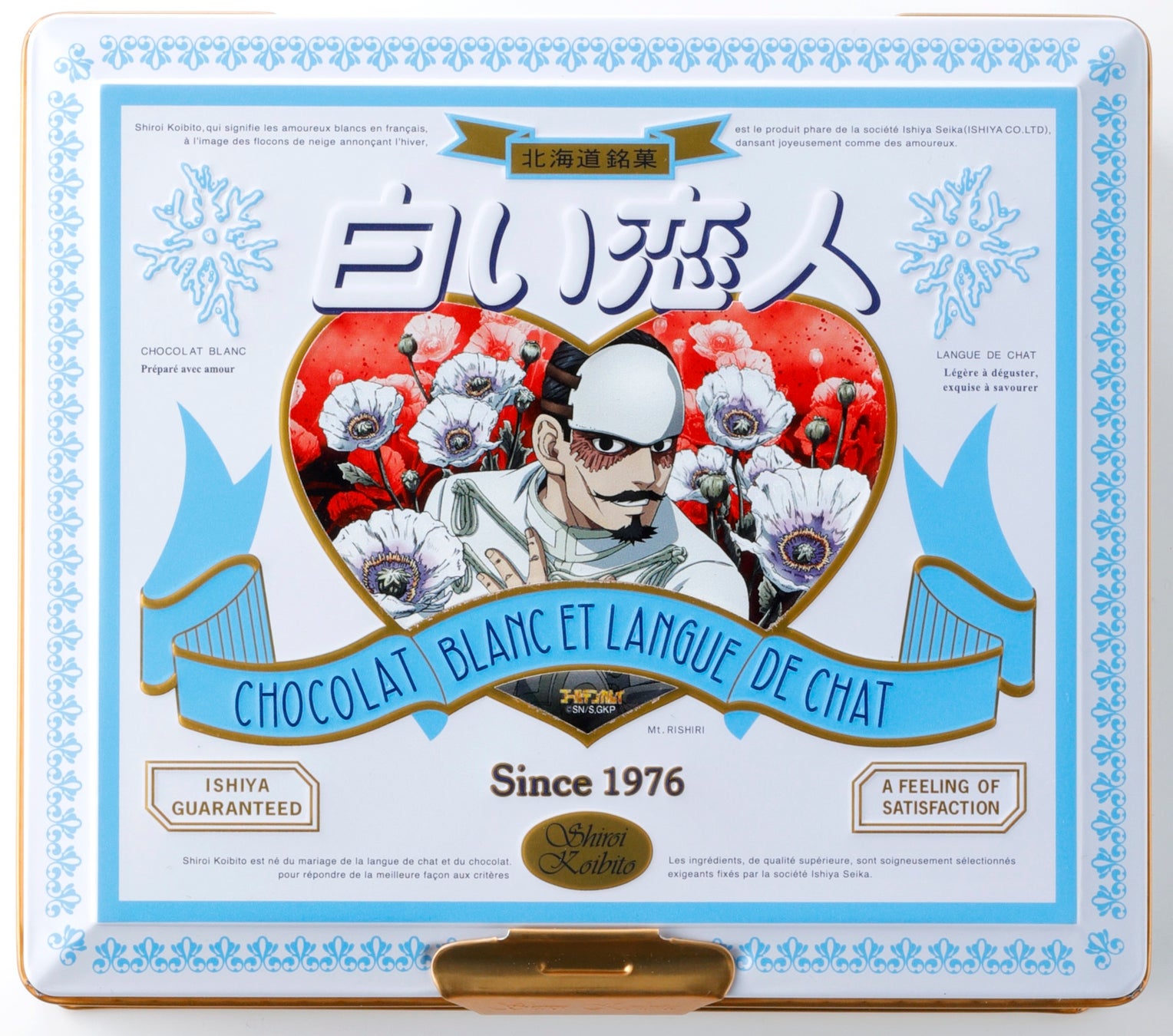 今回の絵柄は、ファンからの要望が多かった「鶴見中尉」を起用。描き下ろしオリジナルイラストを印刷した、白い恋人36枚入り『ゴールデンカムイ』コラボ缶は、白い恋人パーク内「ショップ・ピカデリー」と「ISHIYA札幌大通本店」の他、ISHIYAオンラインショップAnnexにて販売いたします。
