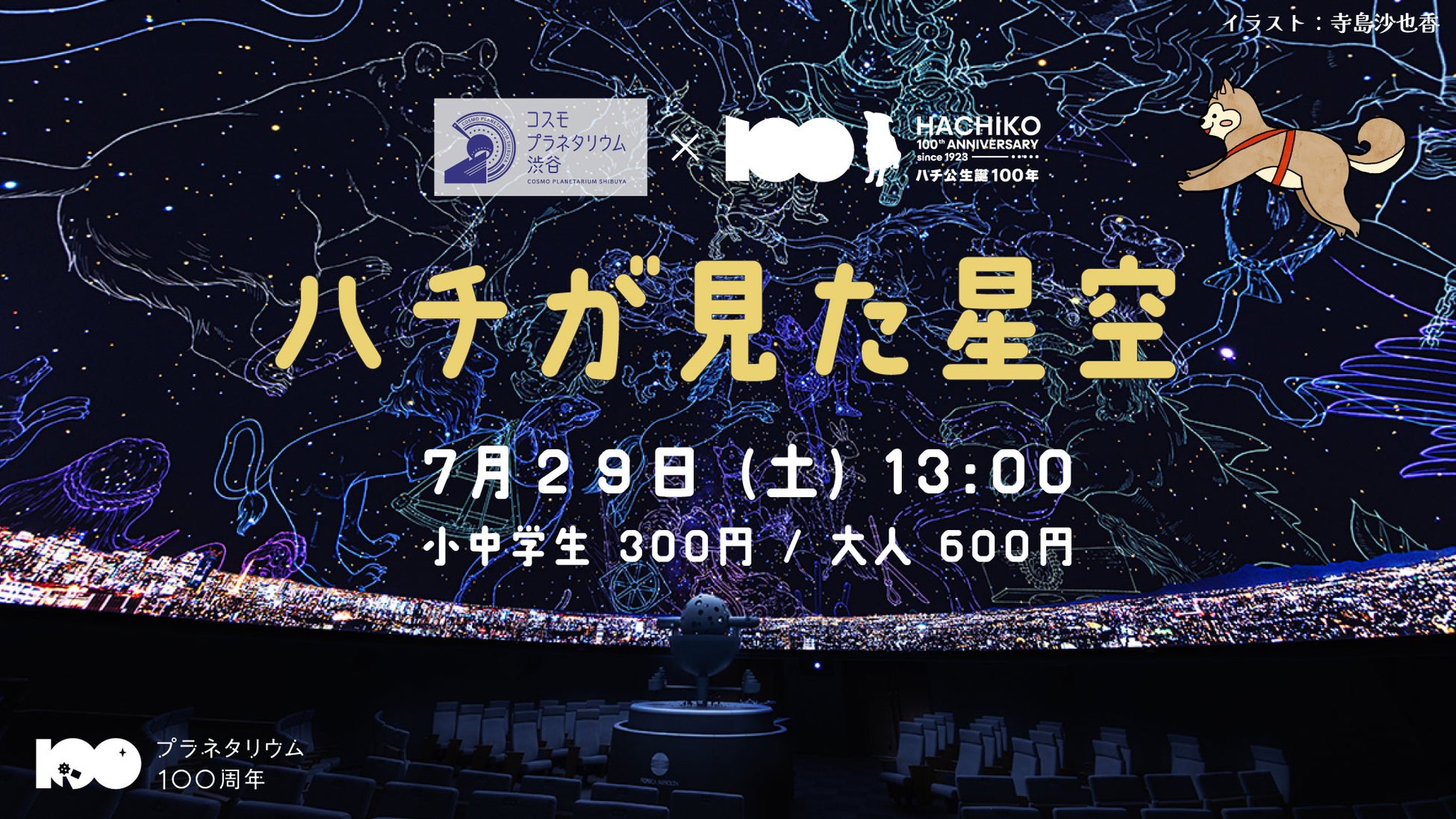 このたび、一般財団法⼈渋谷区観光協会(代表理事:金山淳吾、所在地:東京都渋谷区)が運営団体に所属するハチ公生誕100年事業実行委員会がコスモプラネタリウム渋谷(所在地:東京都渋谷区)との連携事業として1日限定「ハチが見た星空」の上映が決定しましたのでお知らせいたします。