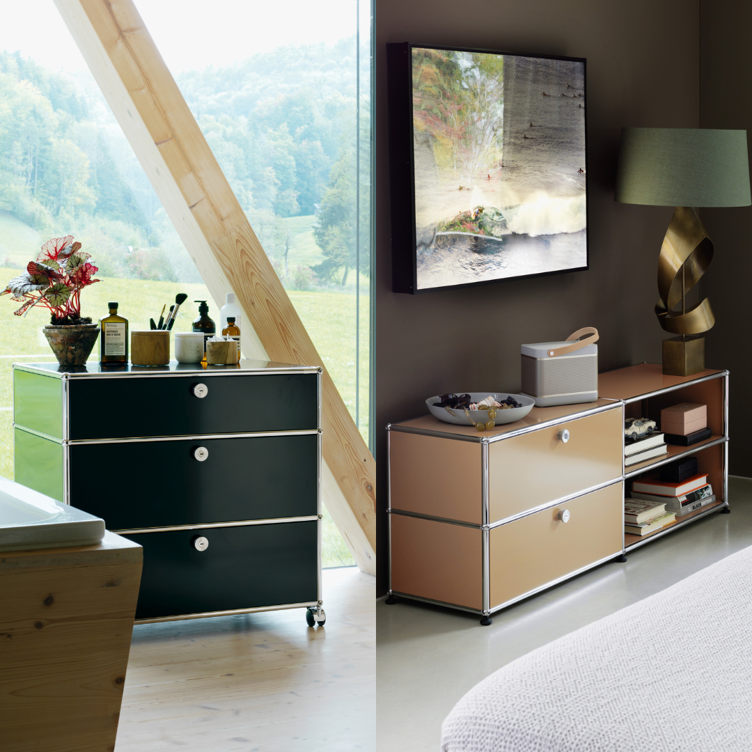 スイスに拠点を置くUSM社は1885年に設立し、半世紀以上にわたり「形態は機能に従う」という企業理念を体現してきました。代表的なモジュラーシステムのUSMハラーをはじめ、高品質の素材、時代の流行に左右されない普遍的なデザイン、機能性、適応性が高く評価されており、住宅と商業スペースの両方で定番となっています。また2001年には、モダンデザインと芸術の象徴的な存在として、ニューヨーク近代美術館の永久コレクションとなりました。