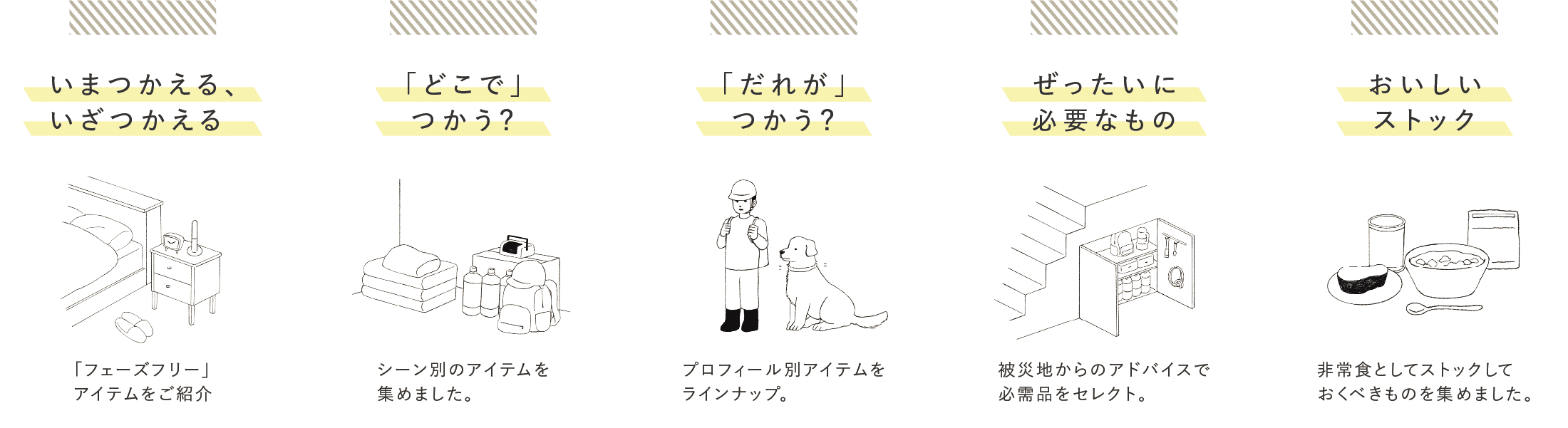 「備え」ビギナーも上級者も、選びやすいカテゴリー設定