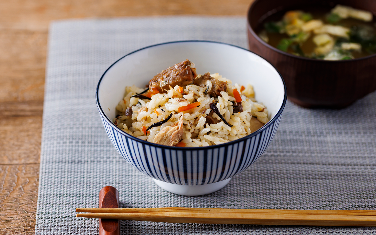 サバ缶詰は、缶にさばと調味液を投入後、密閉してから煮込みます。煮込む際に圧力が加わるため、身も骨も柔らかくなり、サバの皮も骨も血合いも脂分もまるごとお召し上がりいただけるのが缶詰の特徴です。サバには煮る・焼くなどの工程で栄養成分が身の外に出ていきやすい性質がありますが、さば先生は栄養素が溶け出した調味液もご飯と混ぜるので、1缶のDHA・EPAを余すことなく摂取することができます。