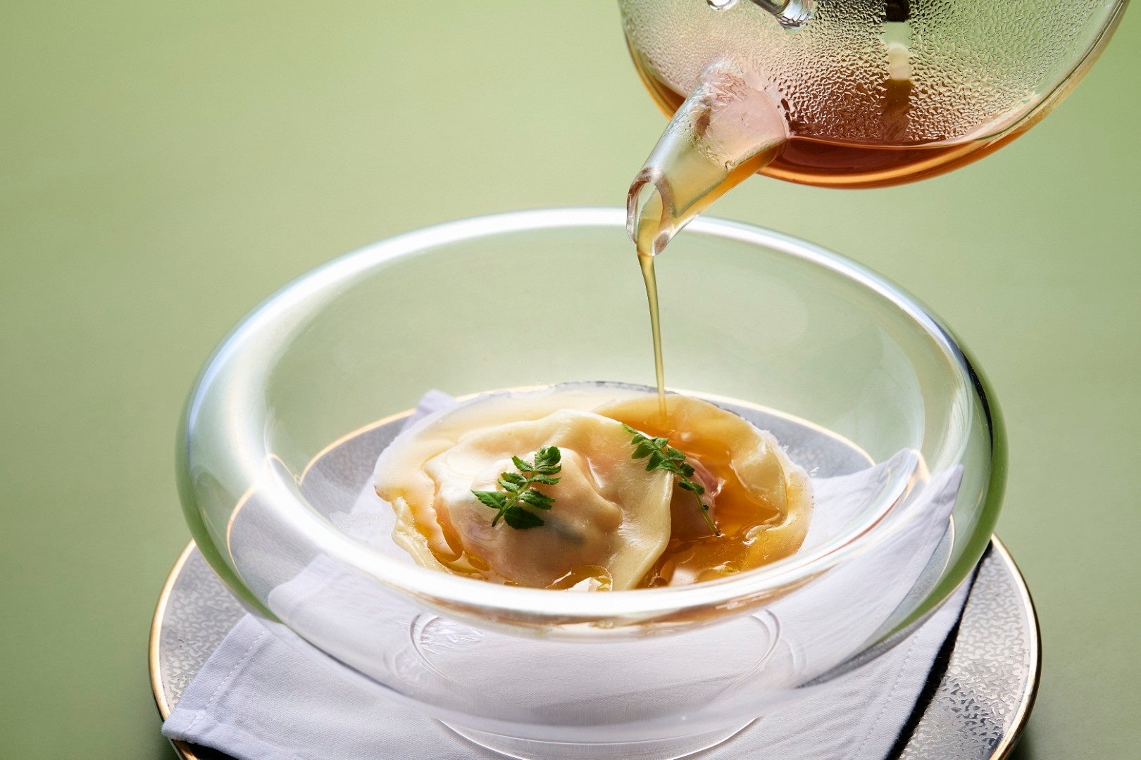 ラビオリ ブルーオマール海老 コンソメ 木の芽