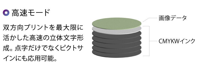 3.独自のUVプリント技術により立体印刷がさらに高速に。点字・ピクトサインを従来の約2倍*の速度で制作が可能。*当社UJFシリーズ比