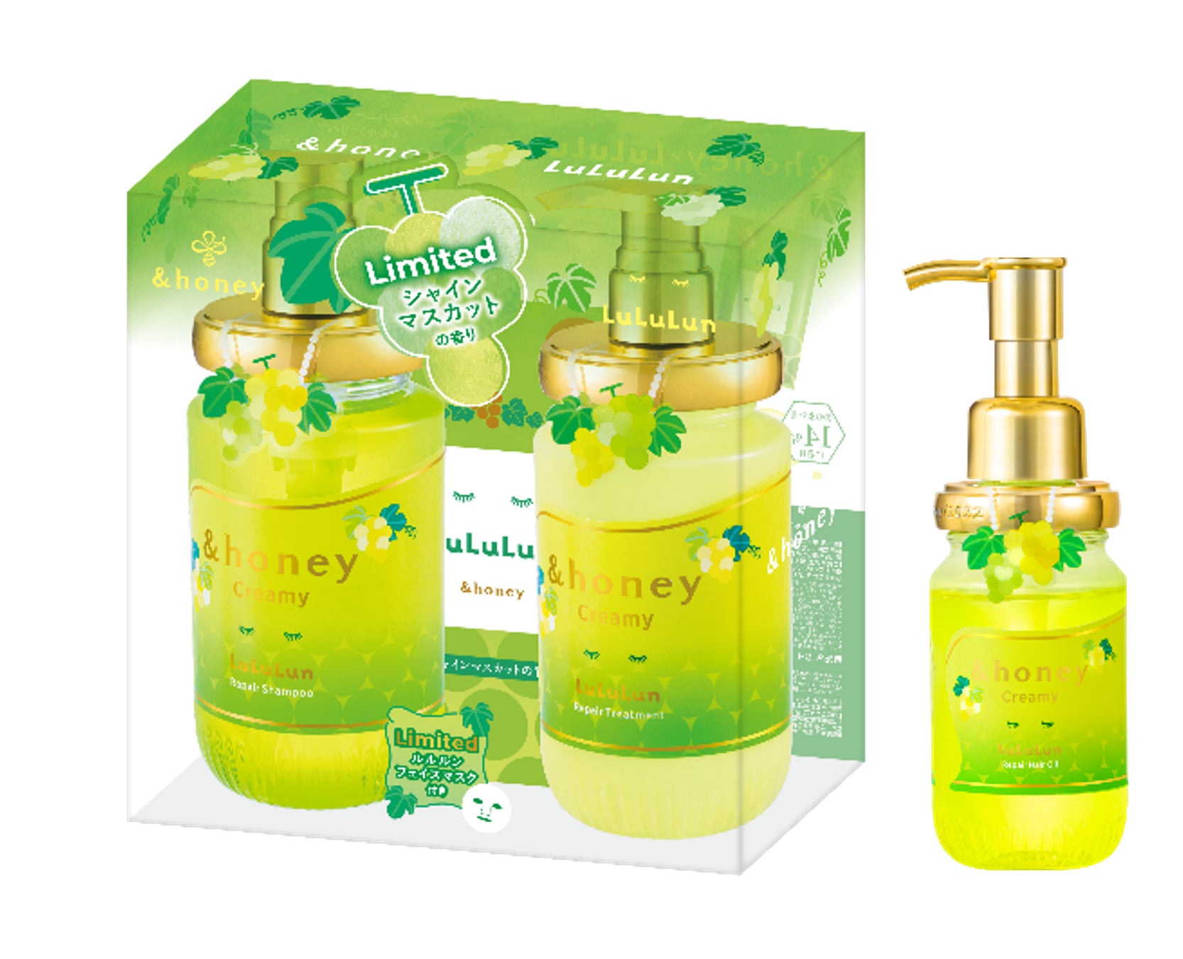 ルルルンと処方・香りを共同開発し、『&honey Creamy LuLuLun』はシャインマスカットの香り、『ululis kirameki LuLuLun』はあまおうの香りで、果実のほんのり甘い香りが広がる贅沢なバスタイムを演出します。今回はそれぞれの果実をイメージしたオリジナルデザインとなっております。