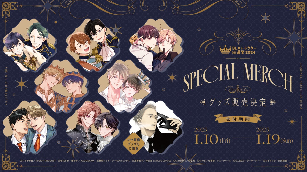 2024年12月13日(金)に結果発表を行った「BLキャラクター総選挙2024」。本イベントを記念したオリジナルグッズの参加作品を発表いたしました。